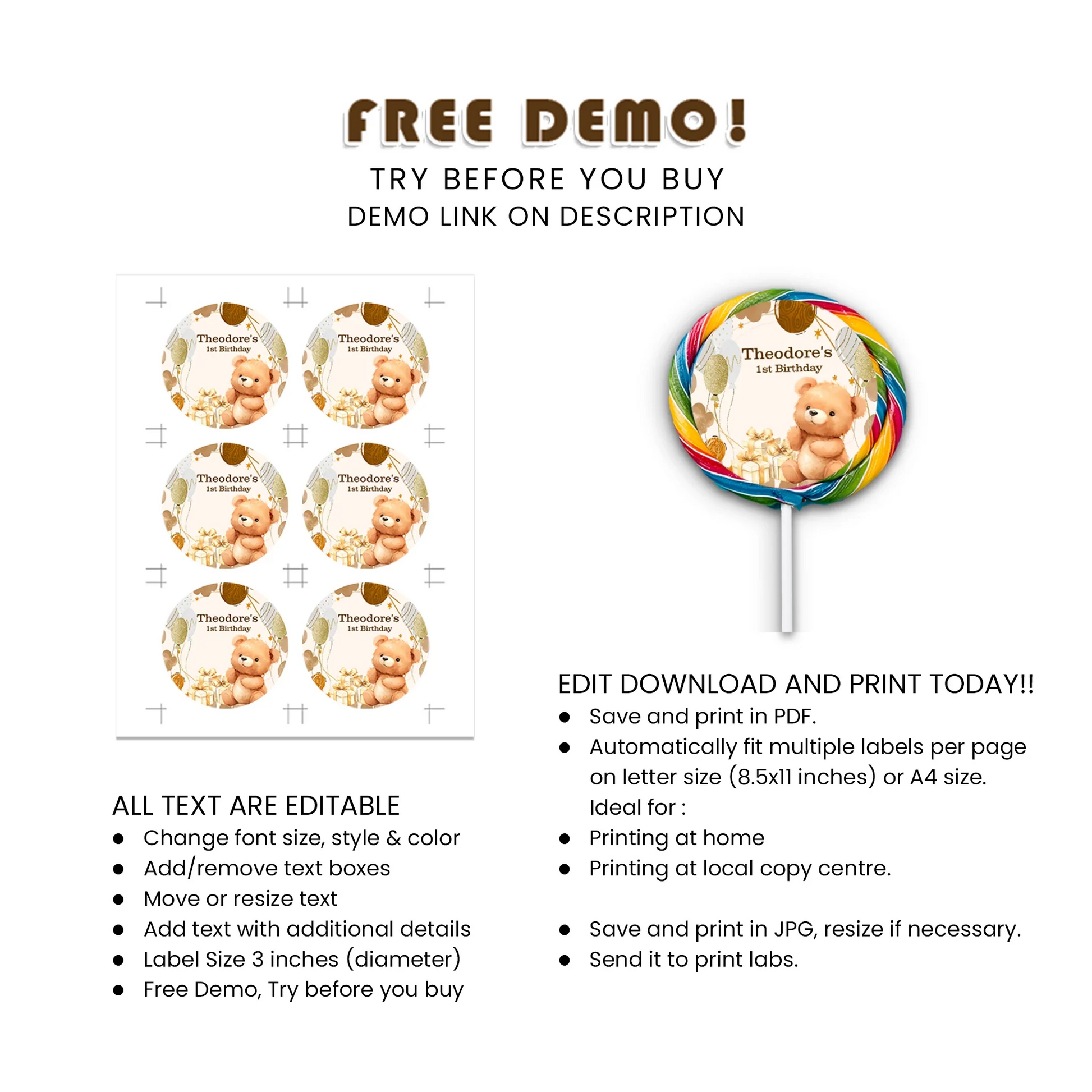 This lollipop Label is fully editable and available for immediate download. Our user-friendly online editor allows for easy customization without any software or font downloads.