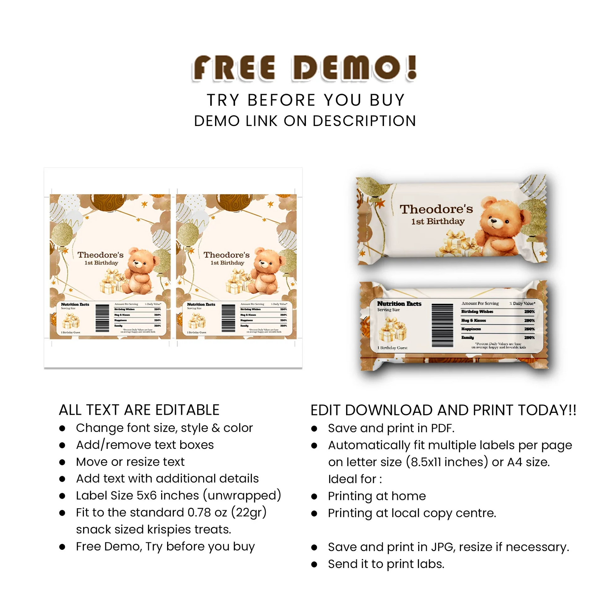 Give treats a cohesive look with matching bear-themed labels for crispy treats and candy bars. Personalized and fun for parties. Shop now.