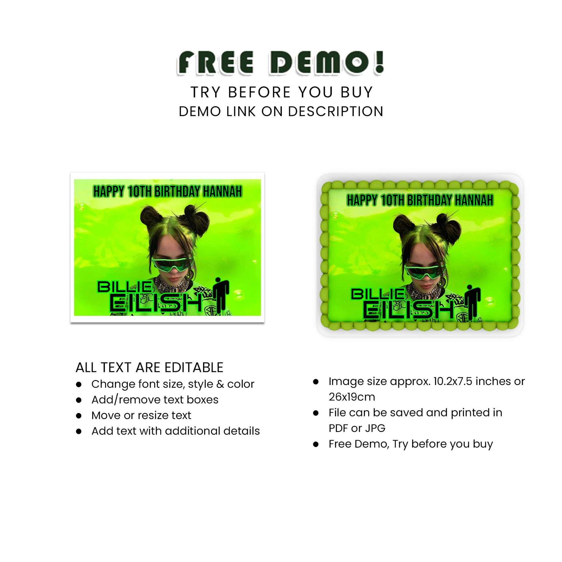 Create a stunning cake with Billie Eilish Personalized Edible Sheet Cake Images. Perfect for birthdays and special occasions, these edible images are easy to apply and customize. Impress your guests with a unique Billie Eilish-themed cake that looks as good as it tastes.