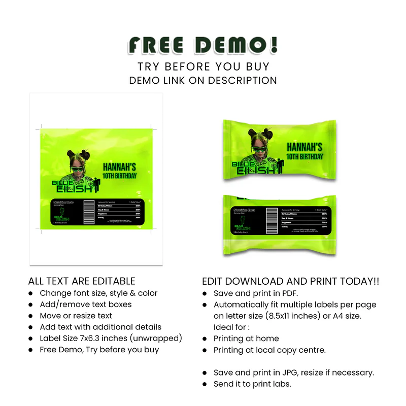 Personalize your Skittles bags with Billie Eilish Skittles Labels. These custom labels are perfect for any Billie Eilish fan and add a unique touch to your celebration. High-quality and vibrant, they make your Skittles bags stand out. Order now for a memorable event.