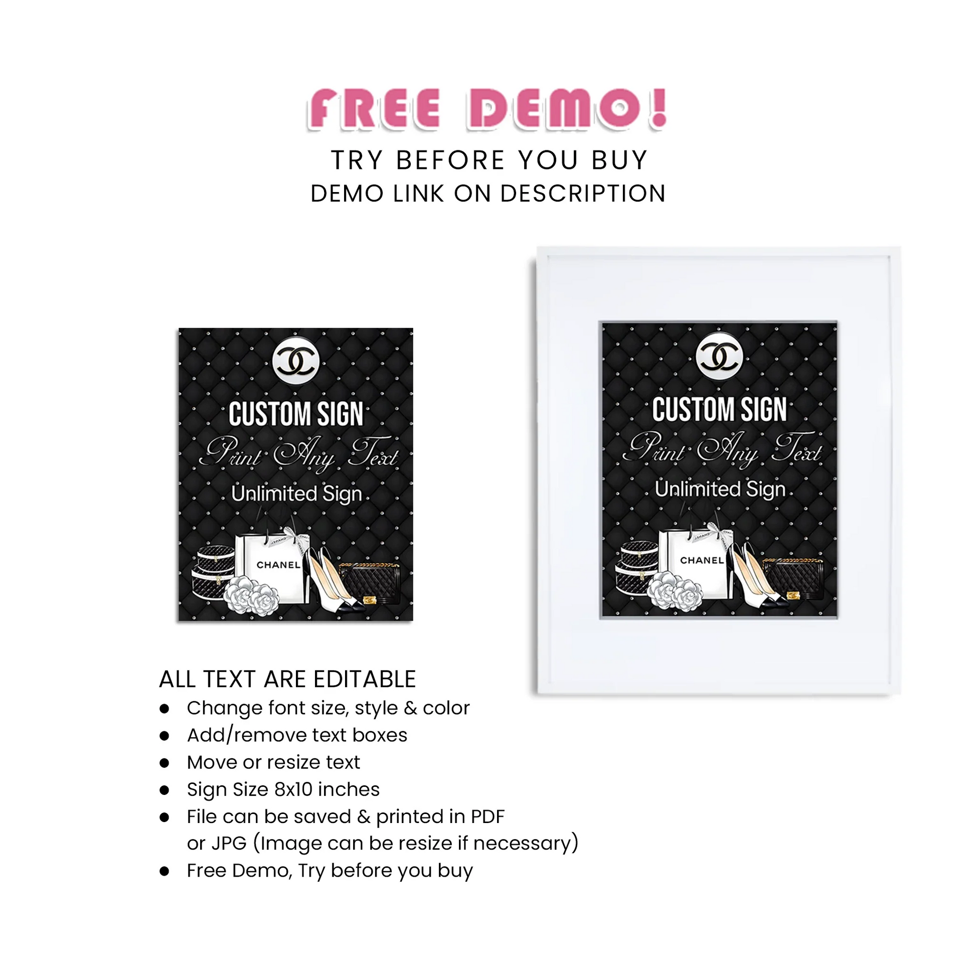 This Custom Sign is fully editable and available for immediate download. Our user-friendly online editor allows for easy customization without any software or font downloads.