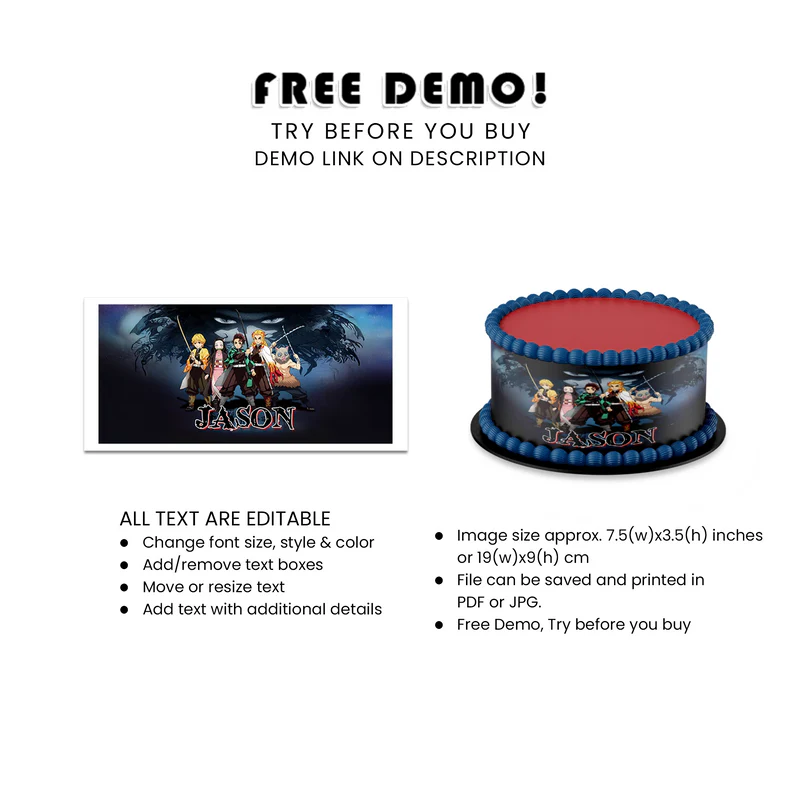 Add anime flair to your cake with Demon Slayer cake strip images. Personalized designs perfect for themed birthdays or cosplay parties.