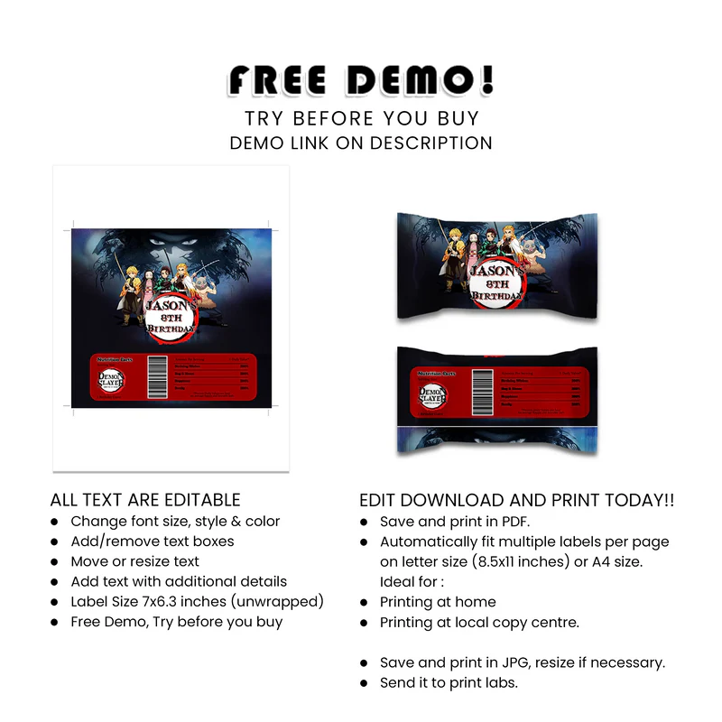 Demon Slayer Skittles Label Editable Sweet Treat Wrapper