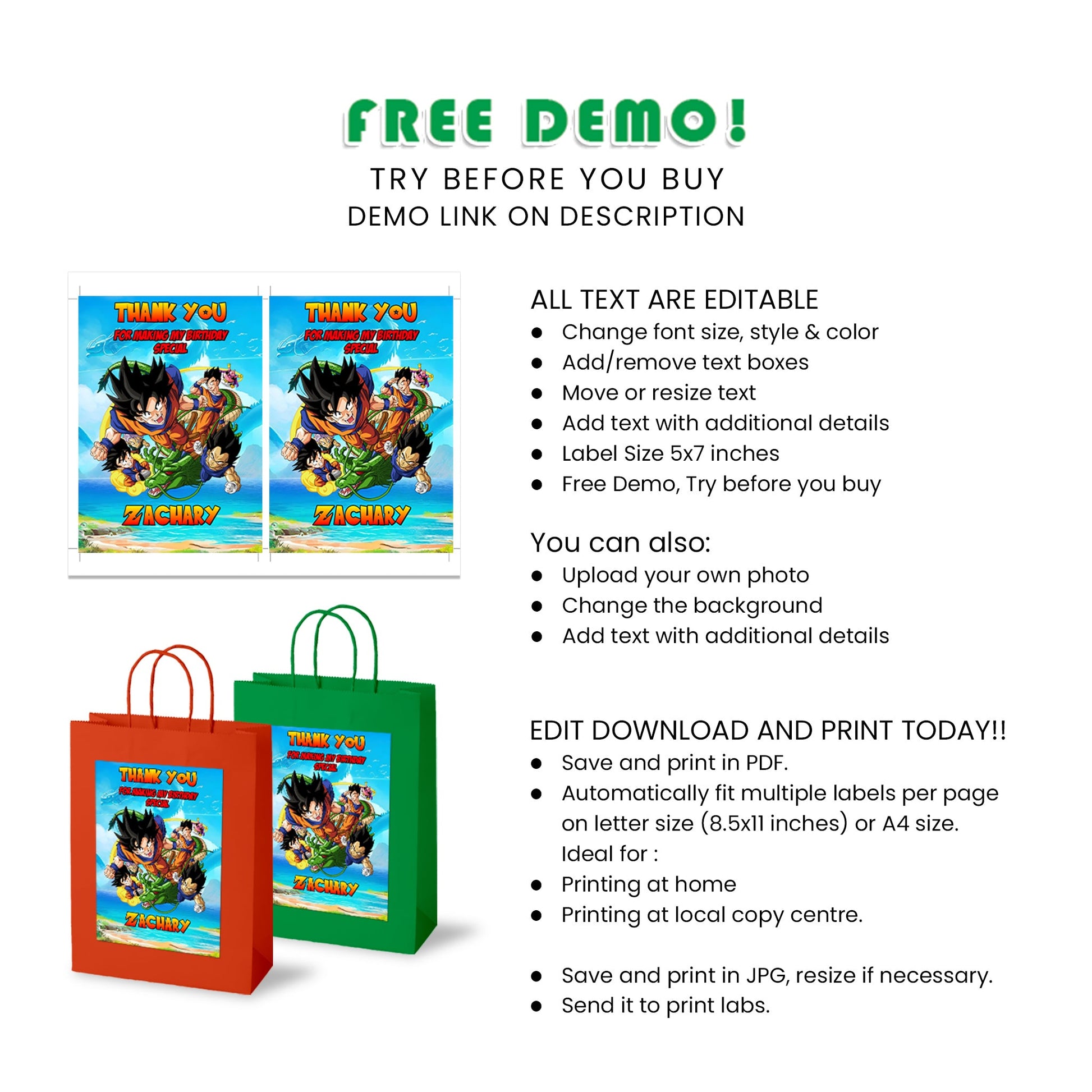 Dragon Ball Goody Bag Label - Make Your Party Favors Stand Out