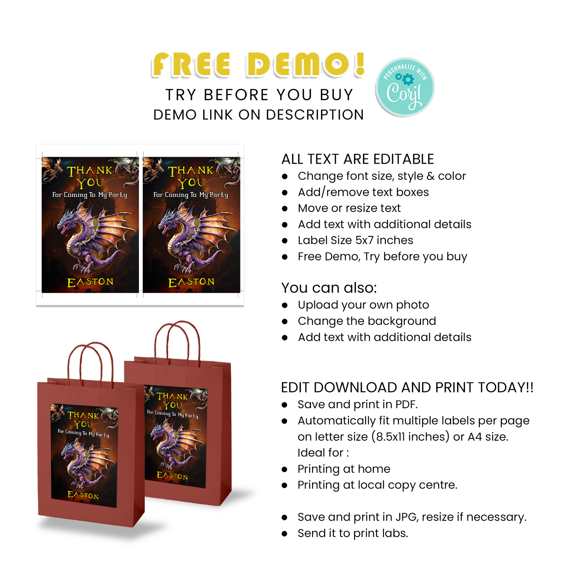 Our Dragon Themed Gift Bag Labels are designed to transform ordinary gift bags into themed delights, making every gift an experience aligned with your special event’s theme.