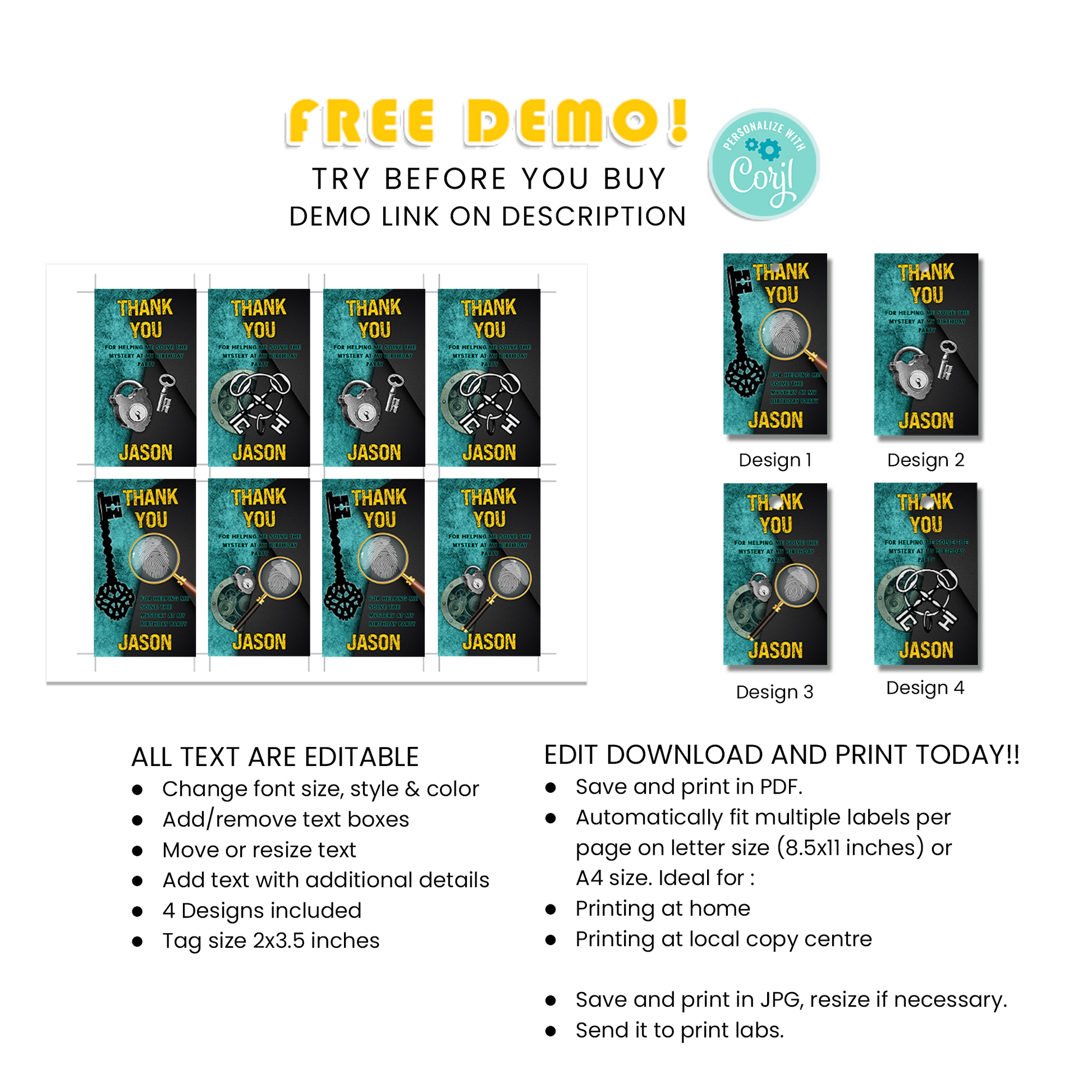 Escape Room Themed Favor Tags/Thank You Tags for Party Favors