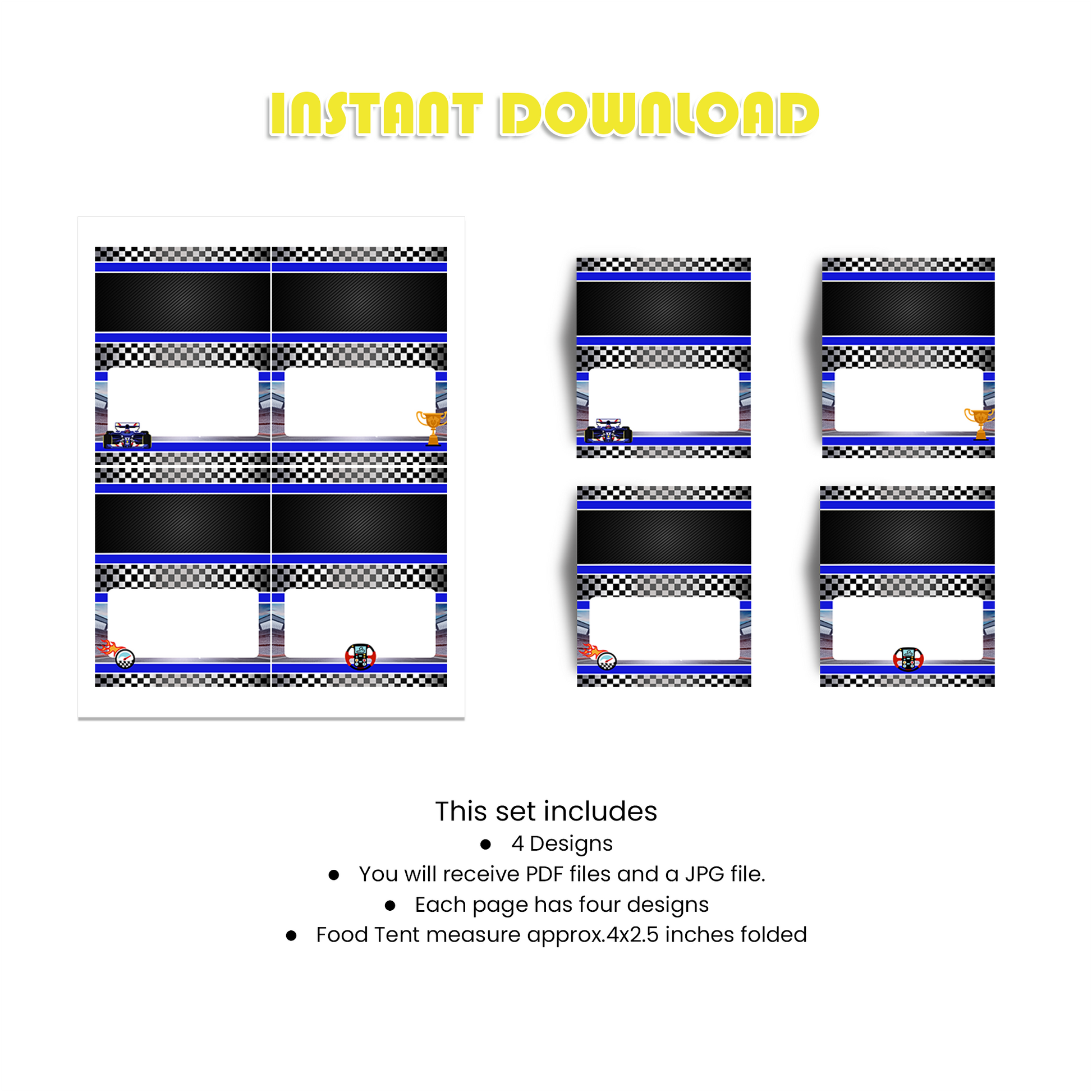 Our Formula One Food Tents/Food Cards are designed to transform ordinary food tents/cards into themed delights, making every meal an experience aligned with your special event’s theme.