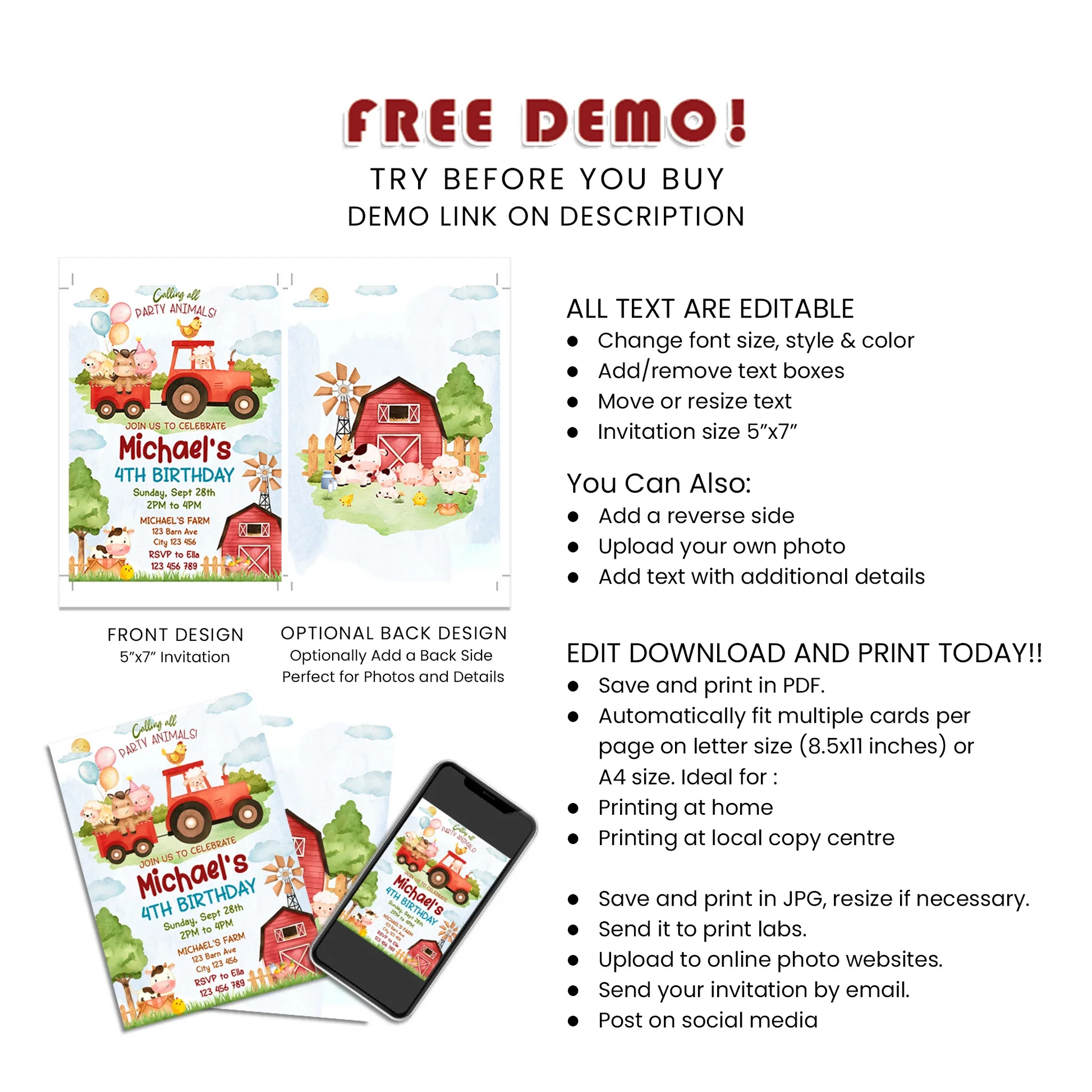 Buy Farm Animals Theme Personalized Birthday Card Invitations