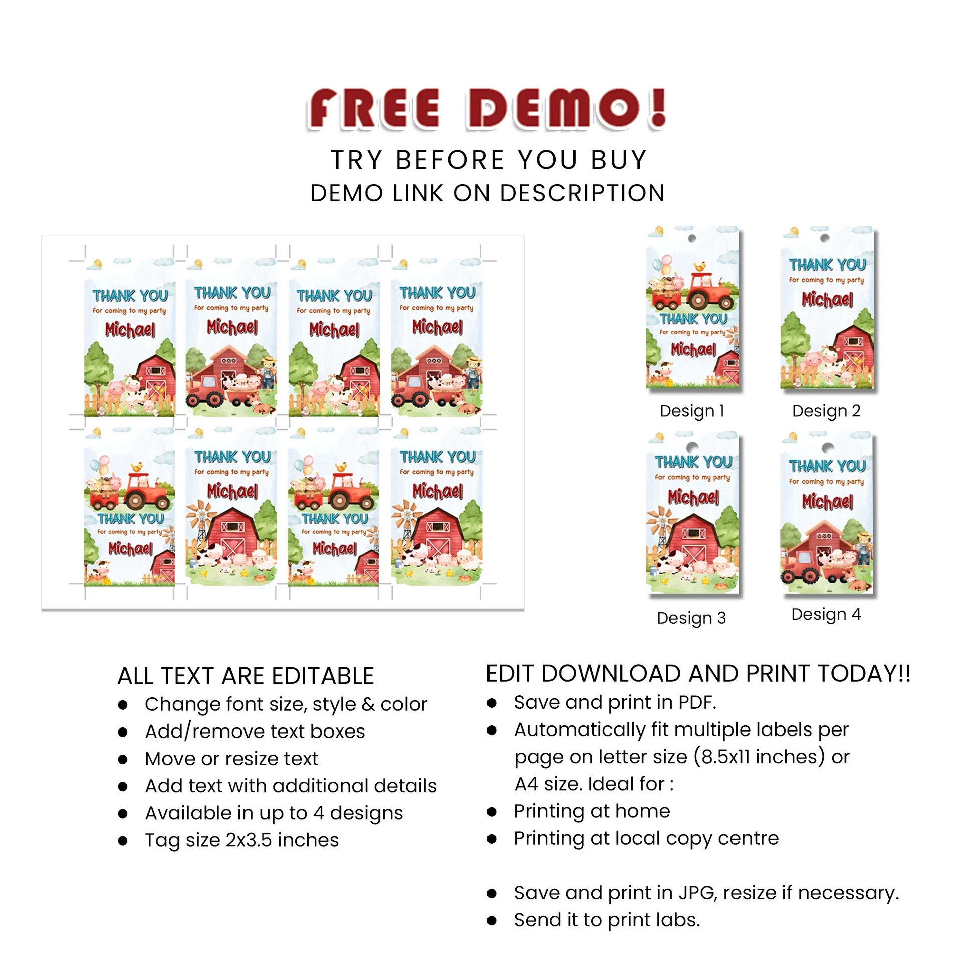 This Birthday Thank you Favor Tag is fully editable and available for immediate download. Our user-friendly online editor allows for easy customization without any software or font downloads.