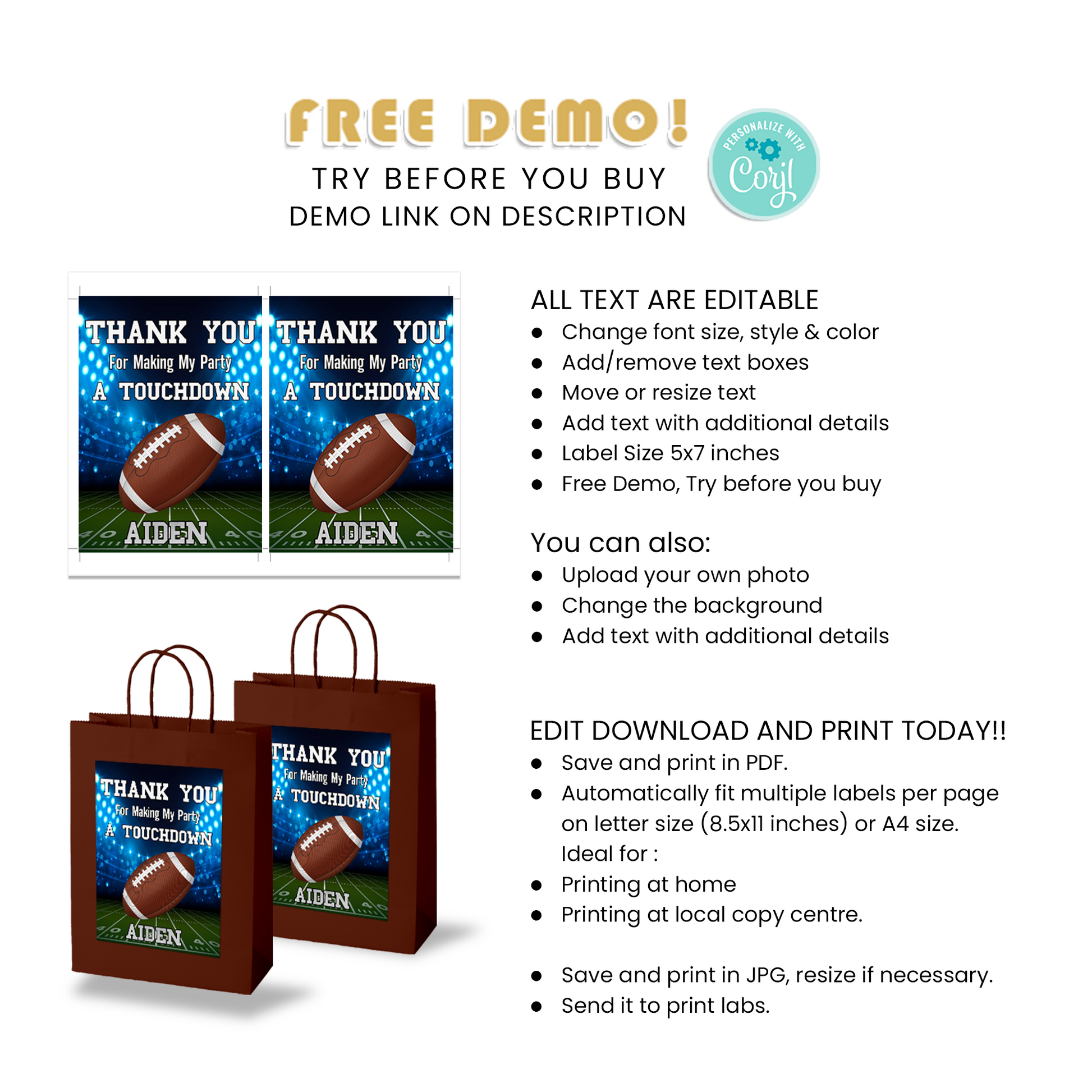 Our Football01 Themed Gift Bag Label is designed to transform ordinary gift bags into themed delights, making every gift an experience aligned with your special event’s theme.