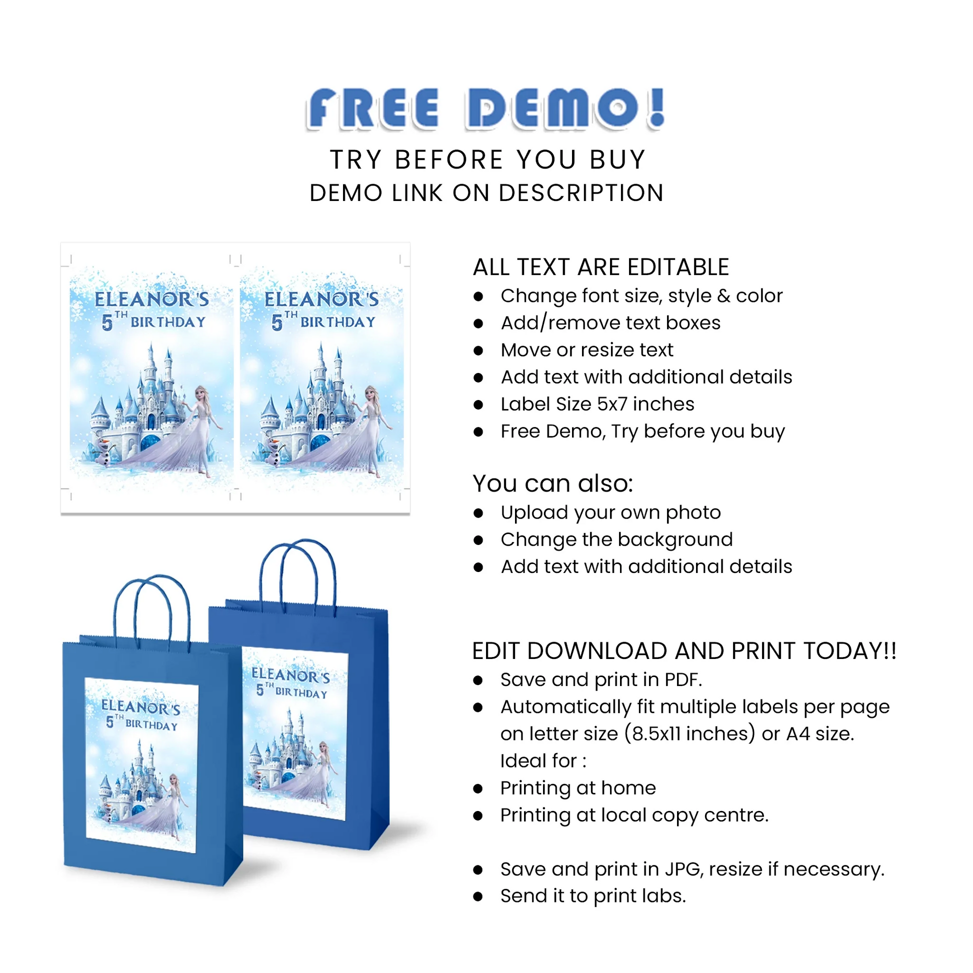 Frozen Goodie Bag Label for Personalized Party Giveaways