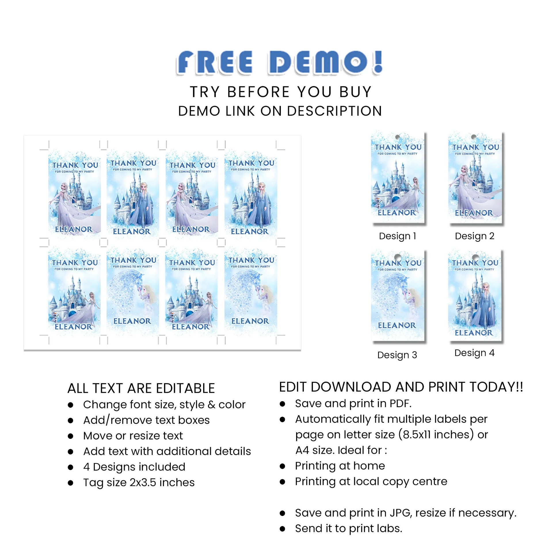 Frozen Favor Tags are perfect for adding a personalized touch to party favors. Featuring a Frozen theme with custom names and messages, these tags make your gift bags and giveaways extra special.
