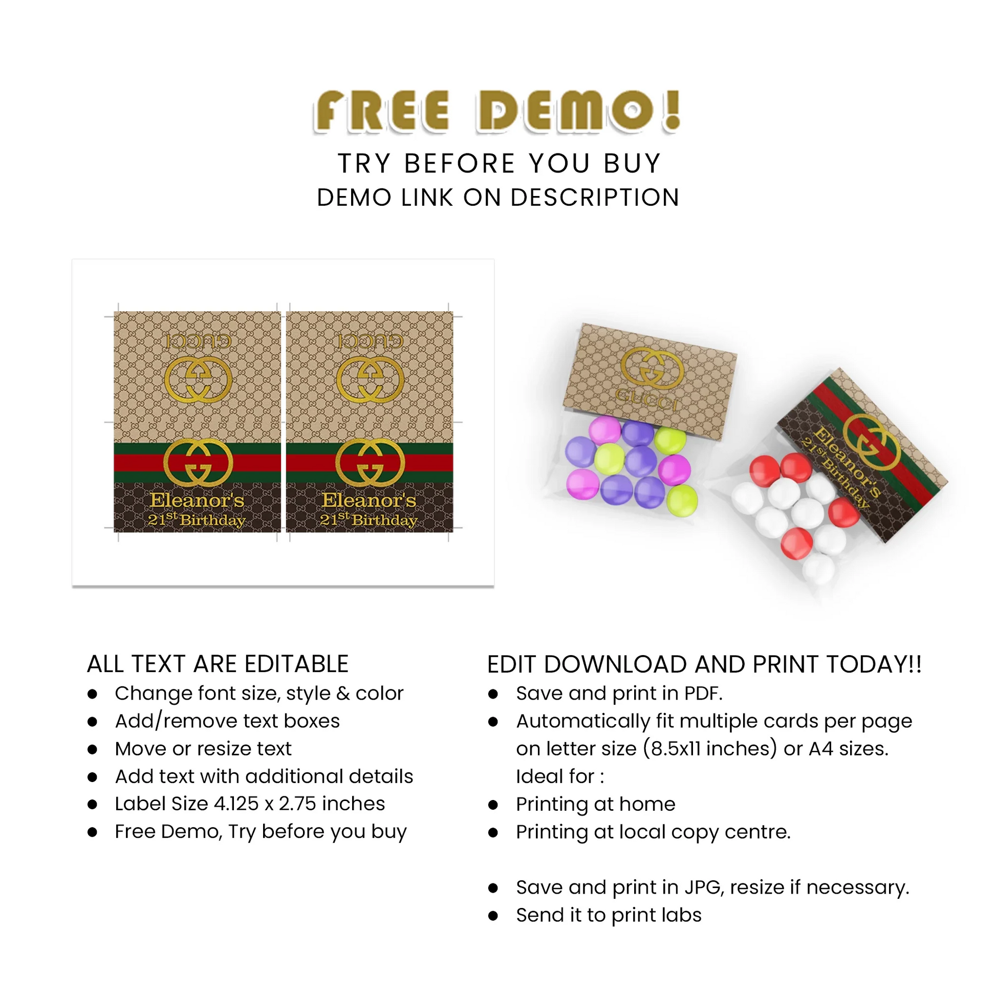 Gucci Inspired Treat Bag Topper Label Custom Printable Design