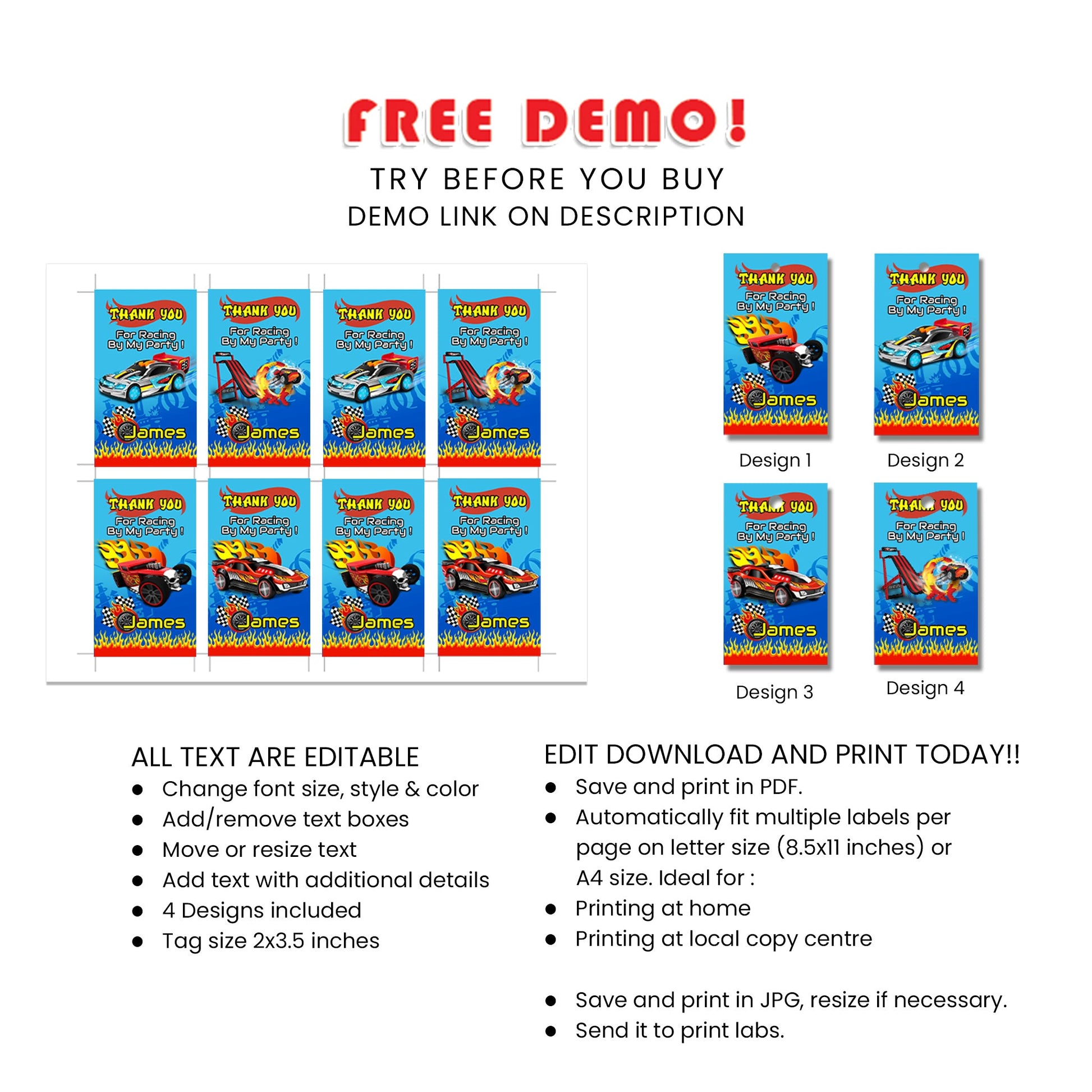 Show Appreciation with Our Unique Hot Wheels Favor Tags