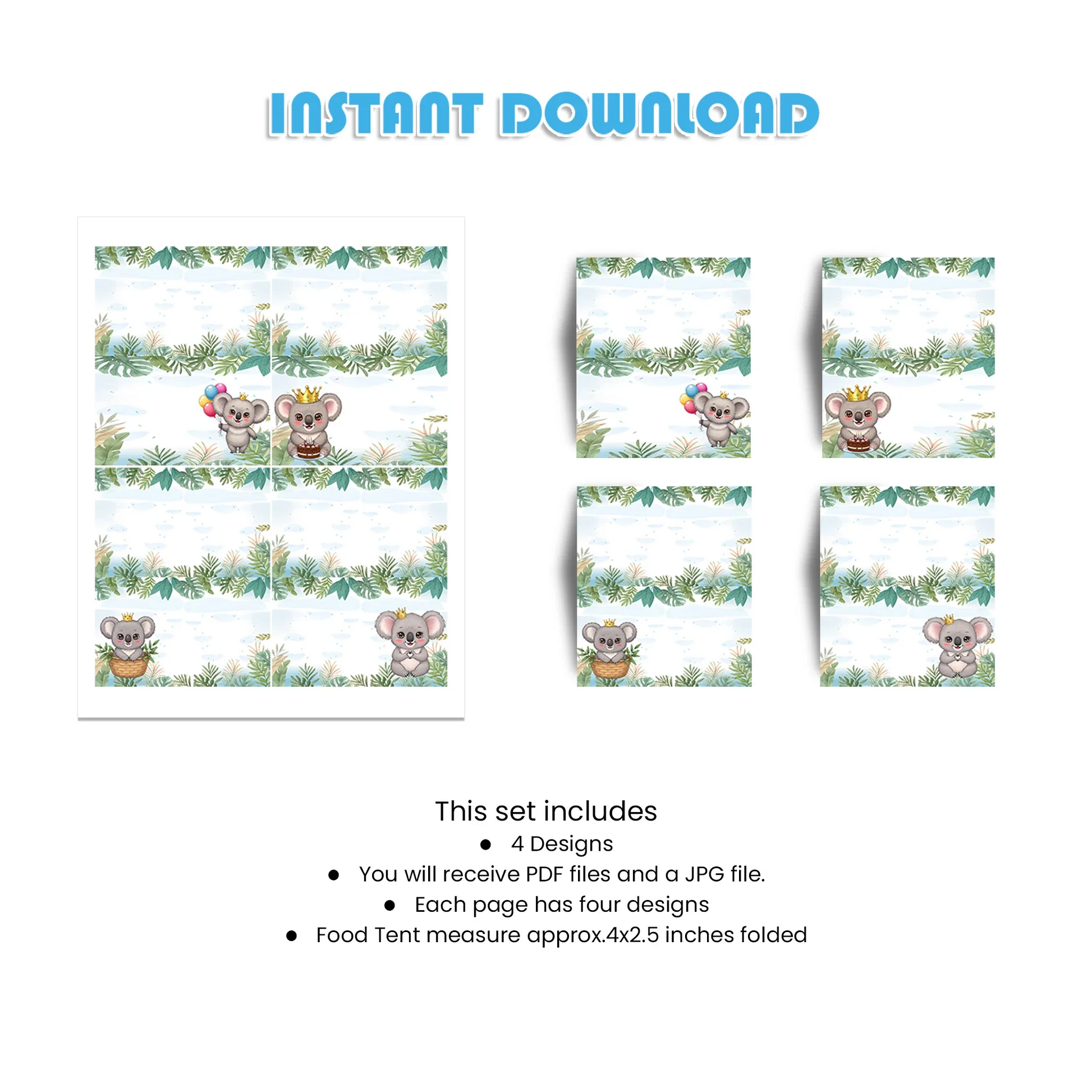 Organize your party table with custom koala-themed food cards. Perfect for labeling buffet items, desserts, or drinks, these personalized cards add charm to your event. Ideal for birthdays, baby showers, and special occasions.