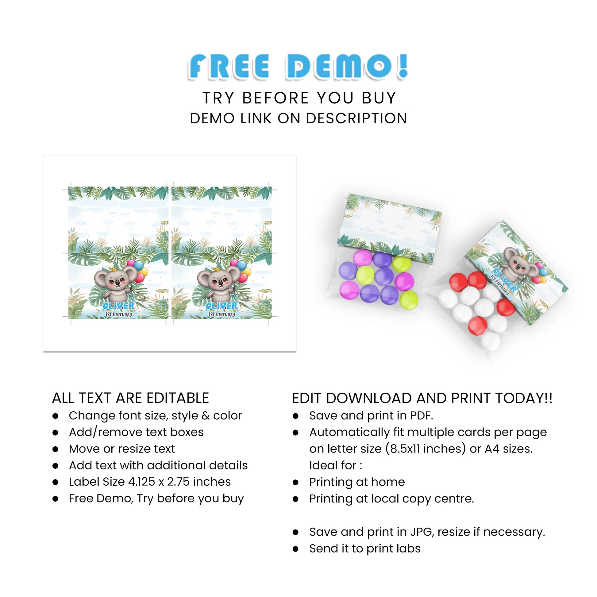 Koala Treat Bag Topper Label – Personalized Party Favor Toppers