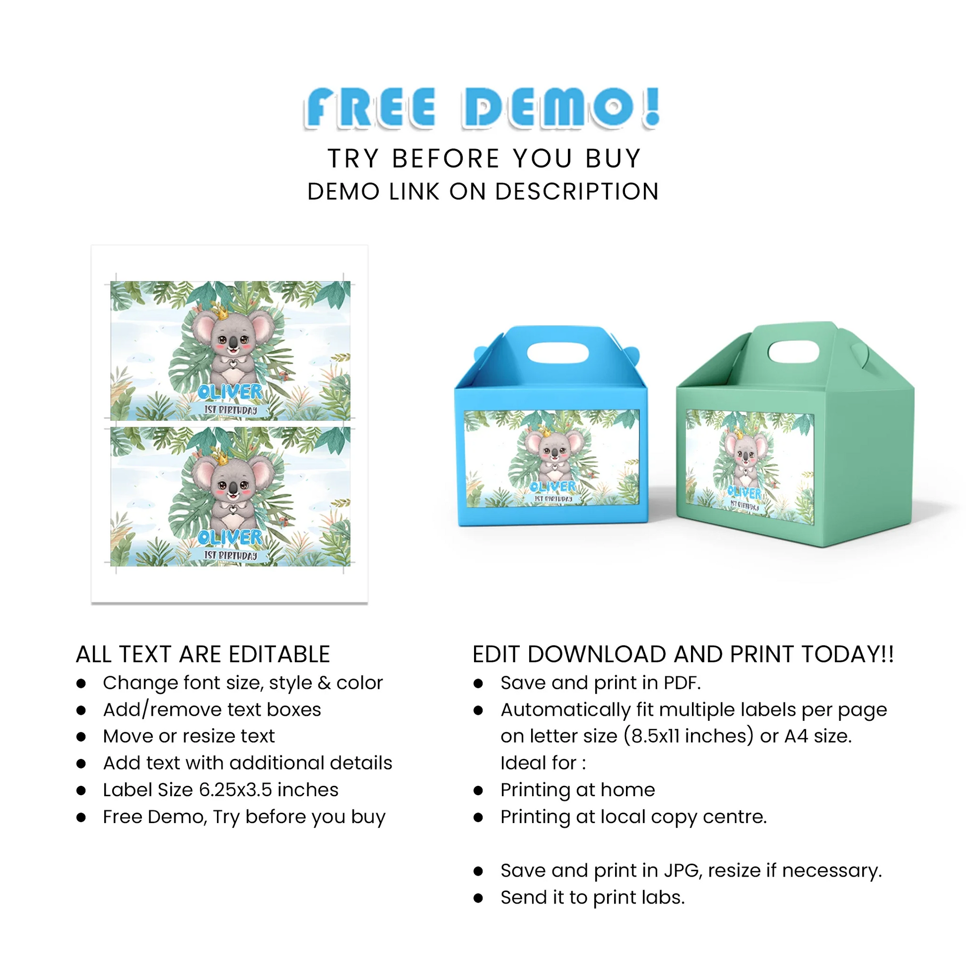 Personalize your party favors with koala-themed treat box labels. Customize with names, dates, or special messages for a unique touch. Perfect for birthdays, baby showers, and celebrations.