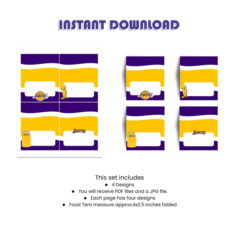 LA Lakers Food Cards Printable Tent Labels for Party Table