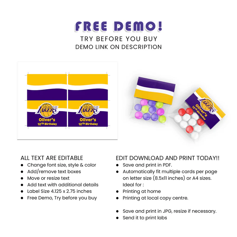 Seal your treat bags with foldable topper labels in Lakers style. These printable designs add a finished touch and help organize your party setup. Great for take-home goodies or dessert tables. Personalize now.