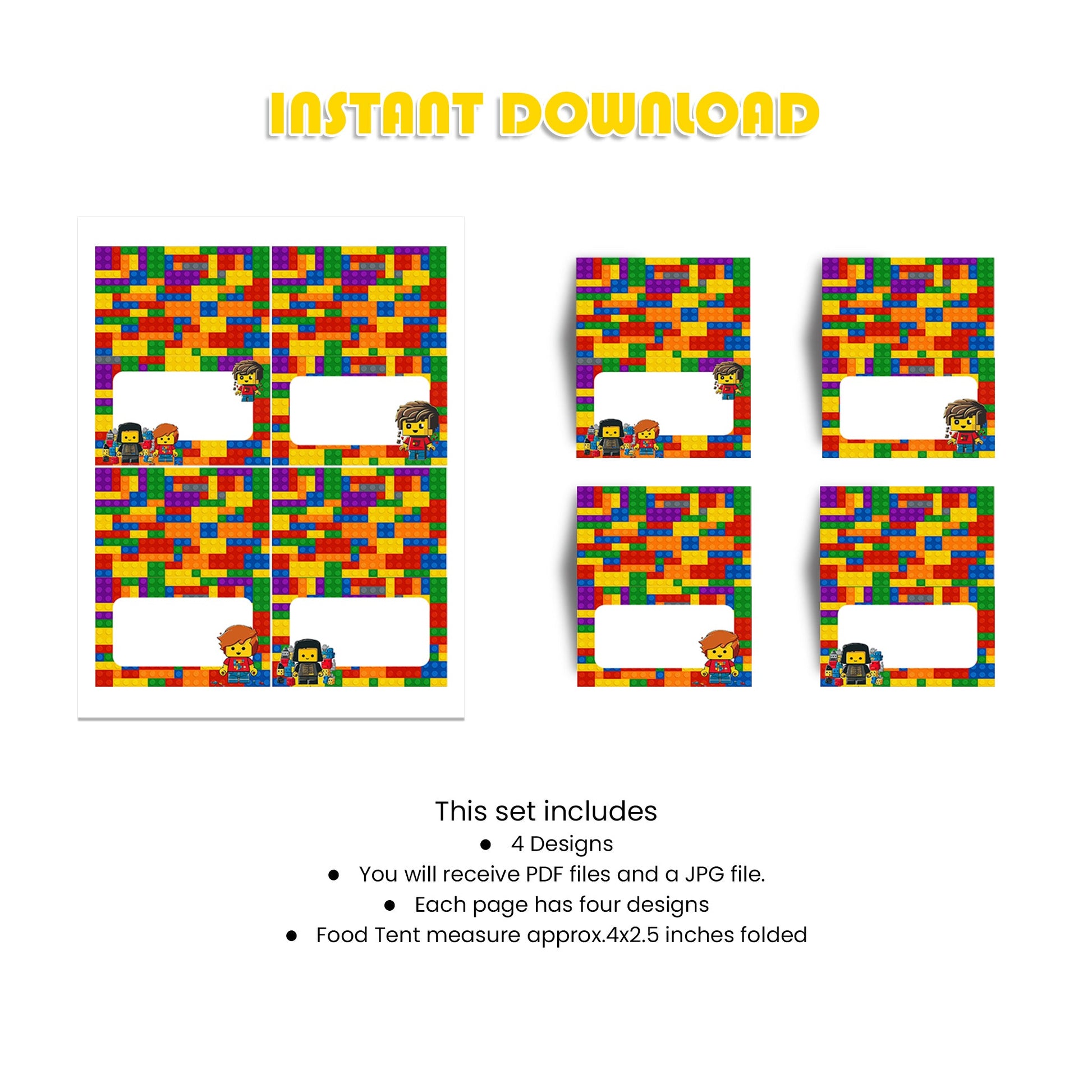 Food Tents/Food Cards with Lego Design - Enhance Your Party Decor