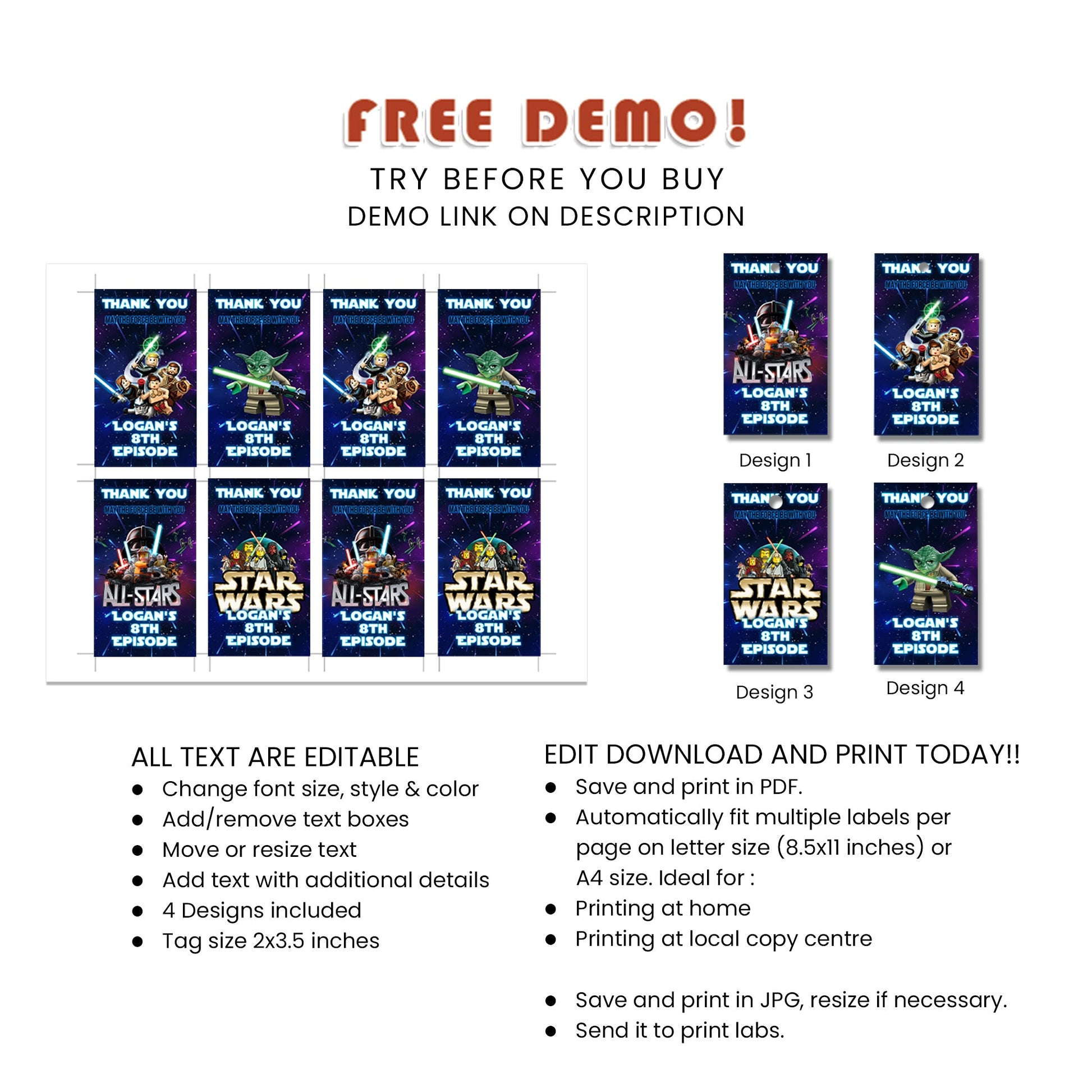 Lego Star Wars Themed Favor Tags - Personalized Thank You Tags for Party Favors