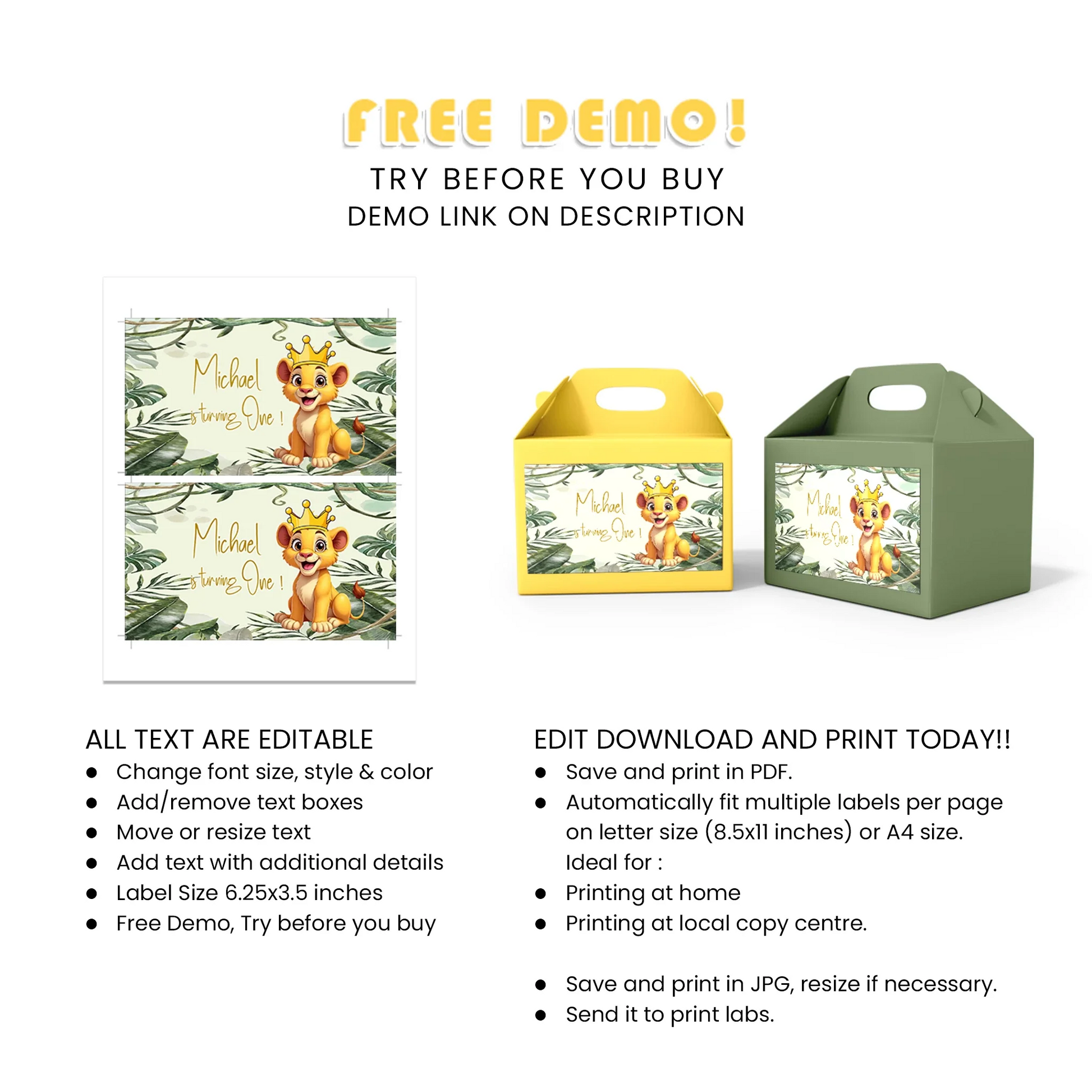 Customize your treat boxes with our Lion King of the Jungle personalized labels. These labels make your party favors extra special and are perfect for birthdays, themed parties, or any occasion where you want to leave a lasting impression.