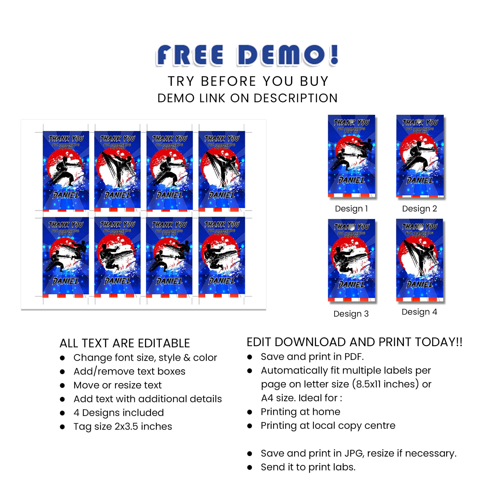 Martial Arts Favor Tags - Perfect Finishing Touch for Your Party Favors