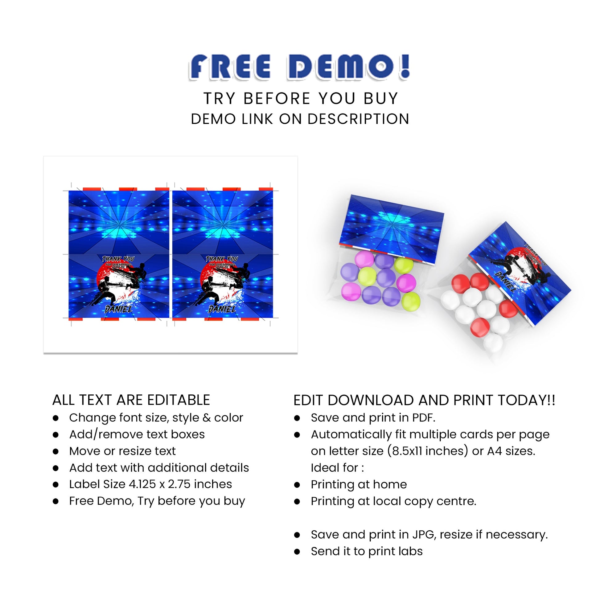 Martial Arts Treat Bag Topper Label - Add a Personal Touch to Your Party Favors