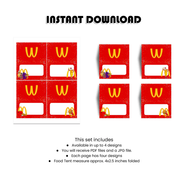 McDonalds Food Cards Personalized Buffet Labels for Kids Party Table