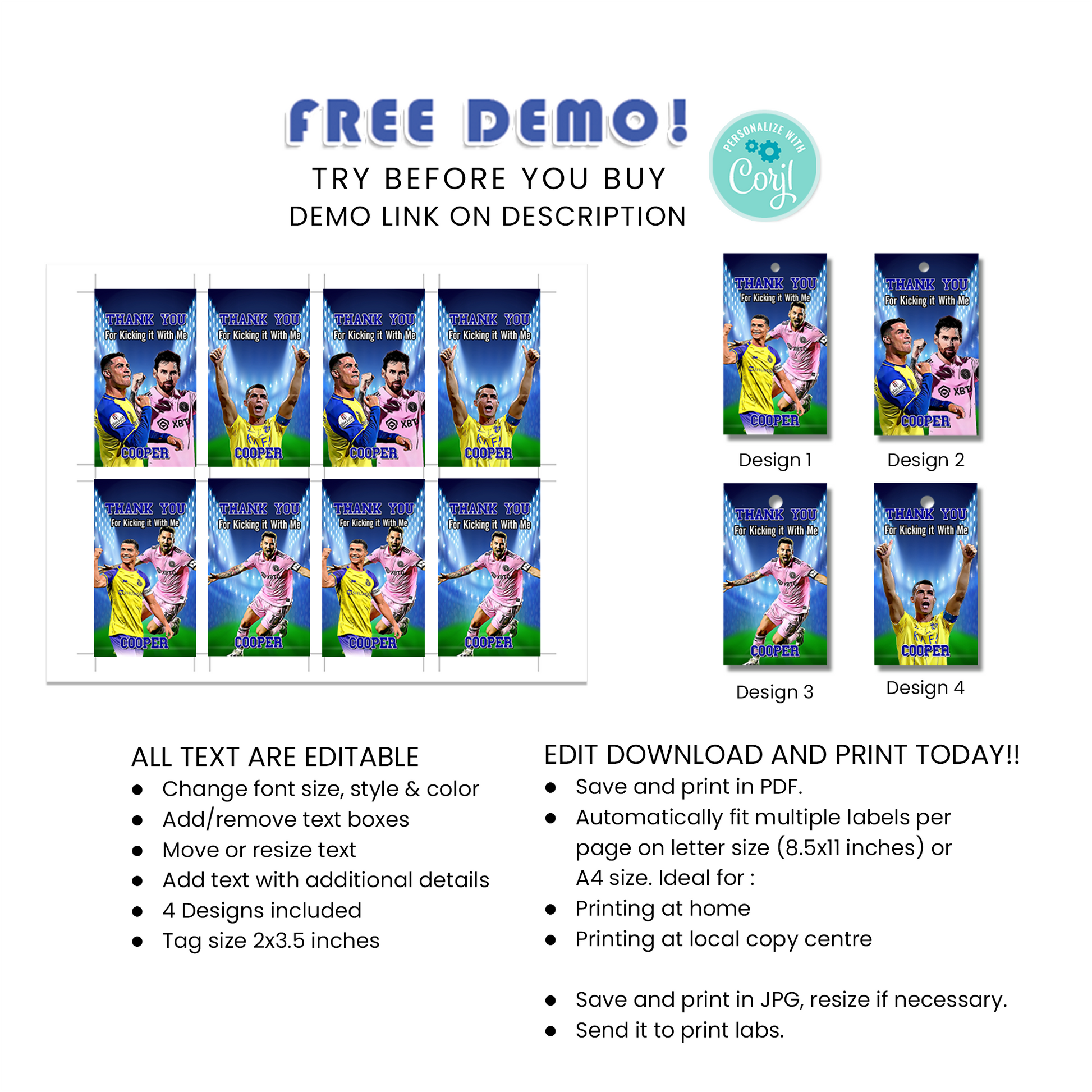 Messi & Ronaldo Favor Tags/Thank You Tags - Show Your Appreciation in Style