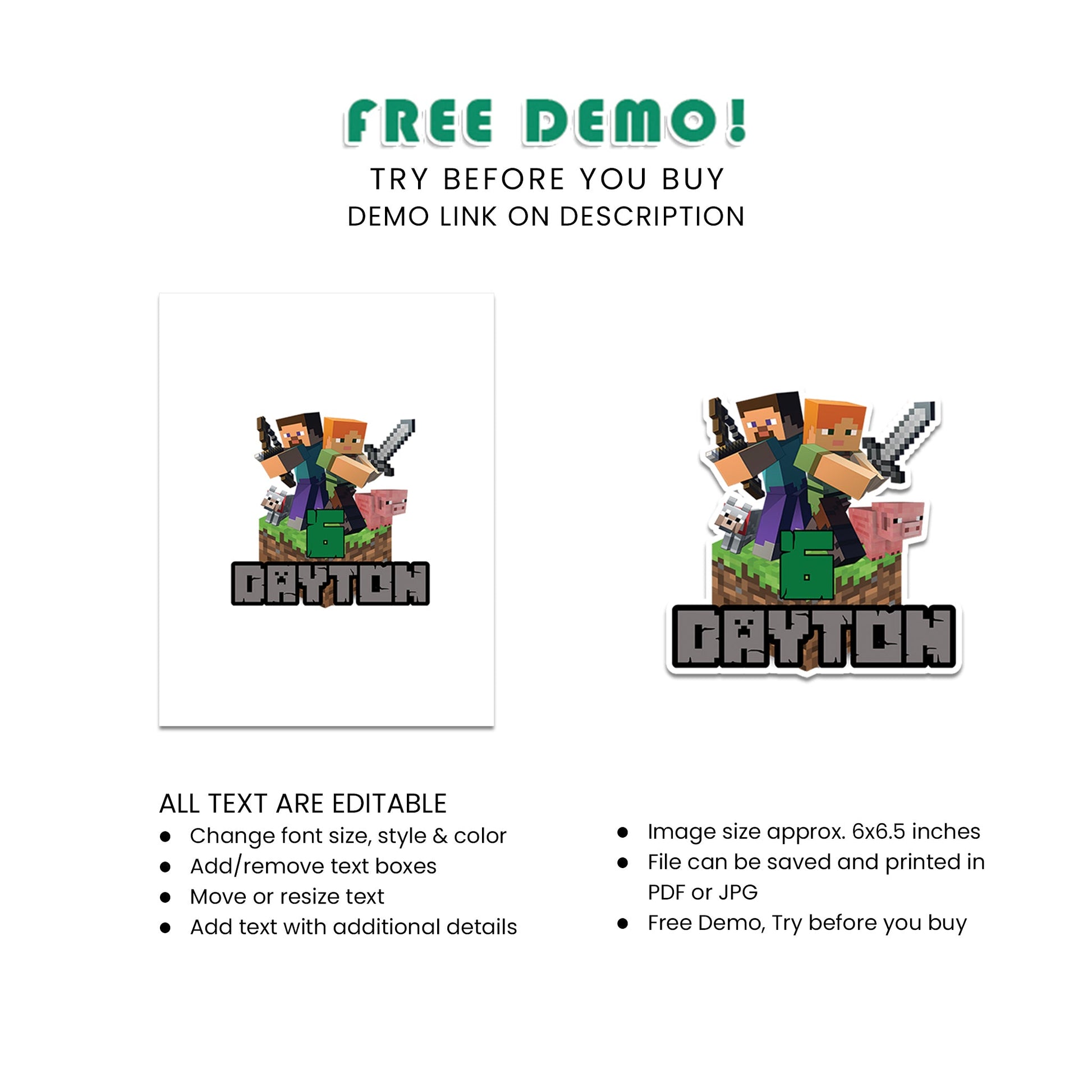 Add a personal touch to your party with our Minecraft Personalized Cake Toppers. Perfect for any celebration!