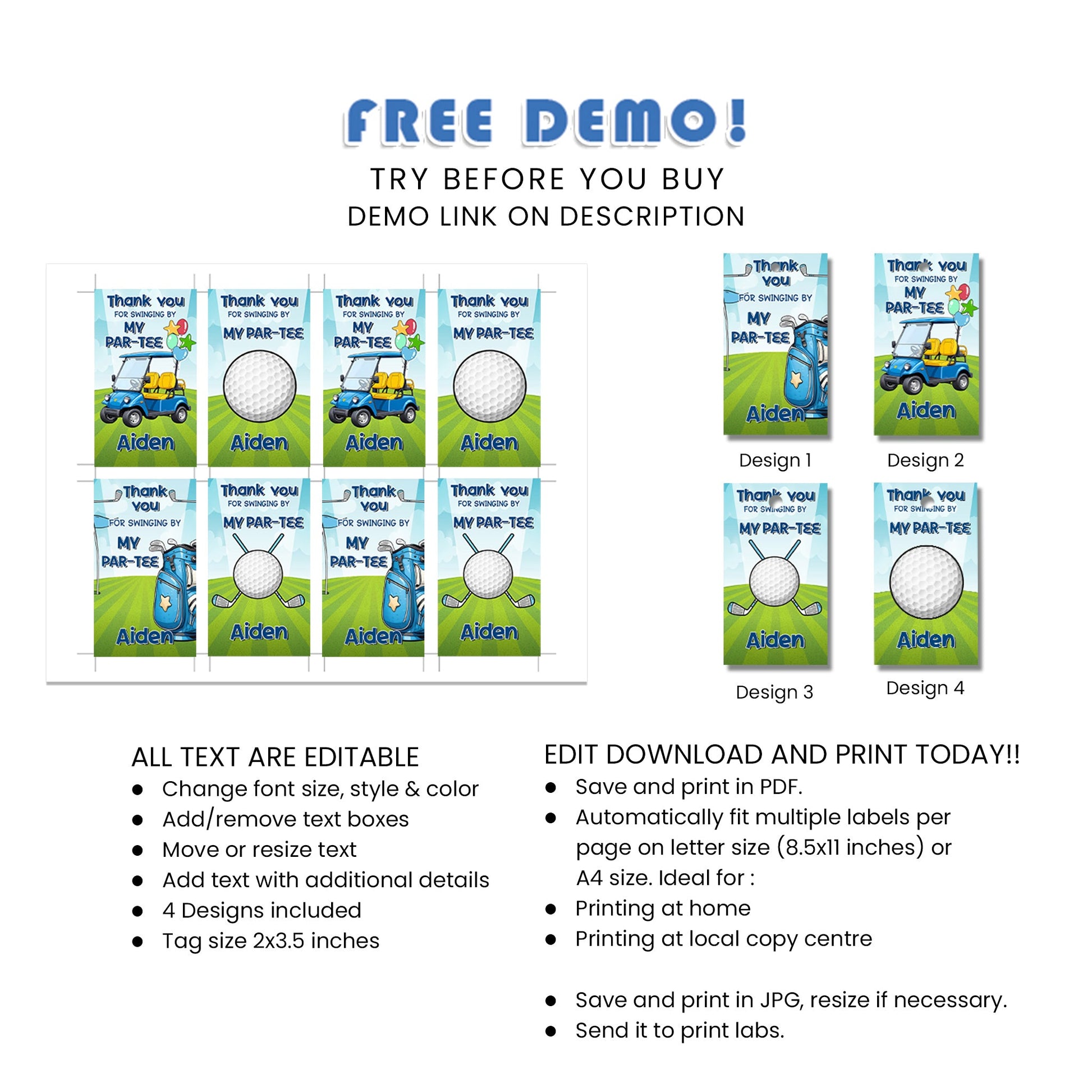 Golf Favor Tags - Custom Tags for Golf Party Favors and Goodie Bags
