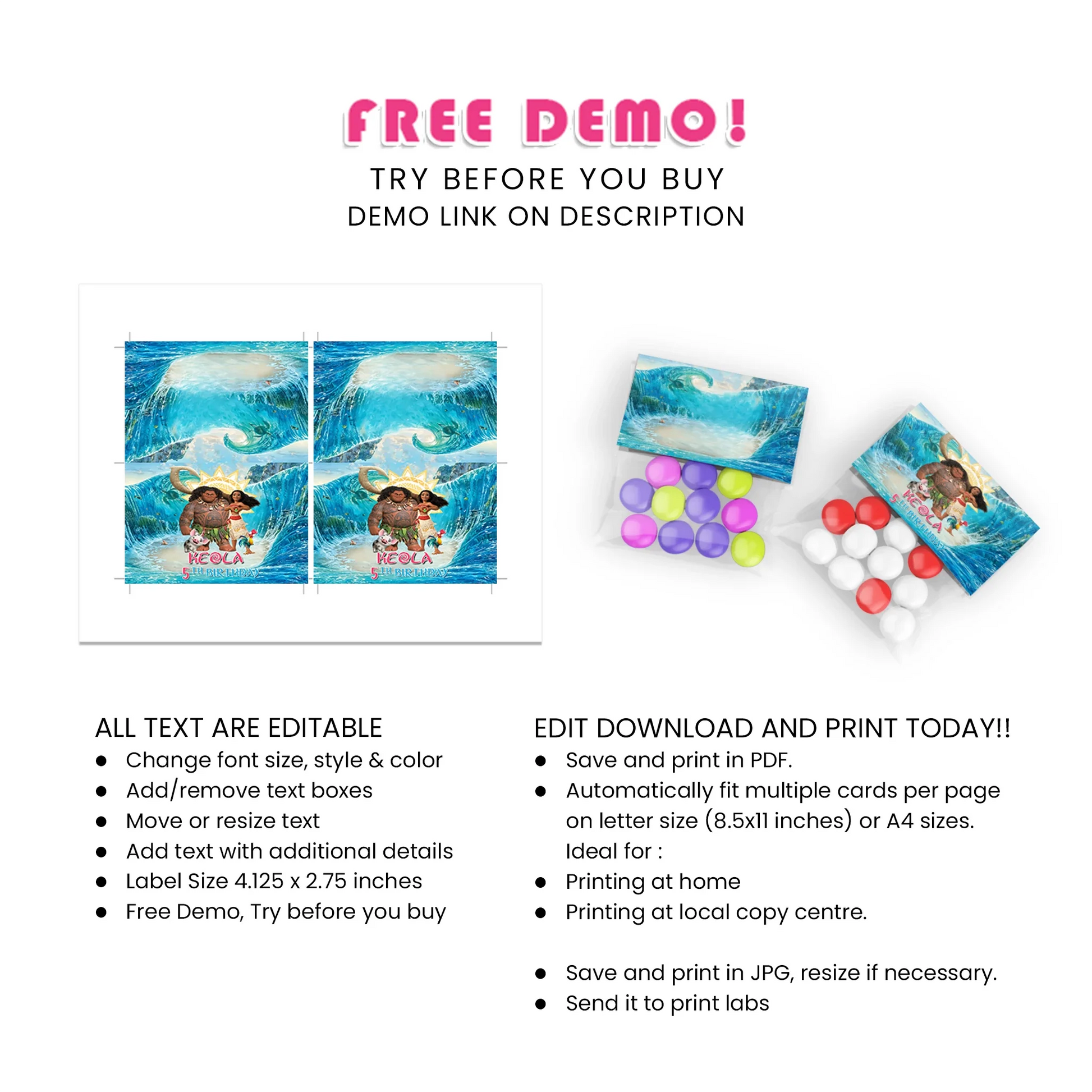 Moana Treat Bag Topper Label - Add a Special Touch to Treat Bags