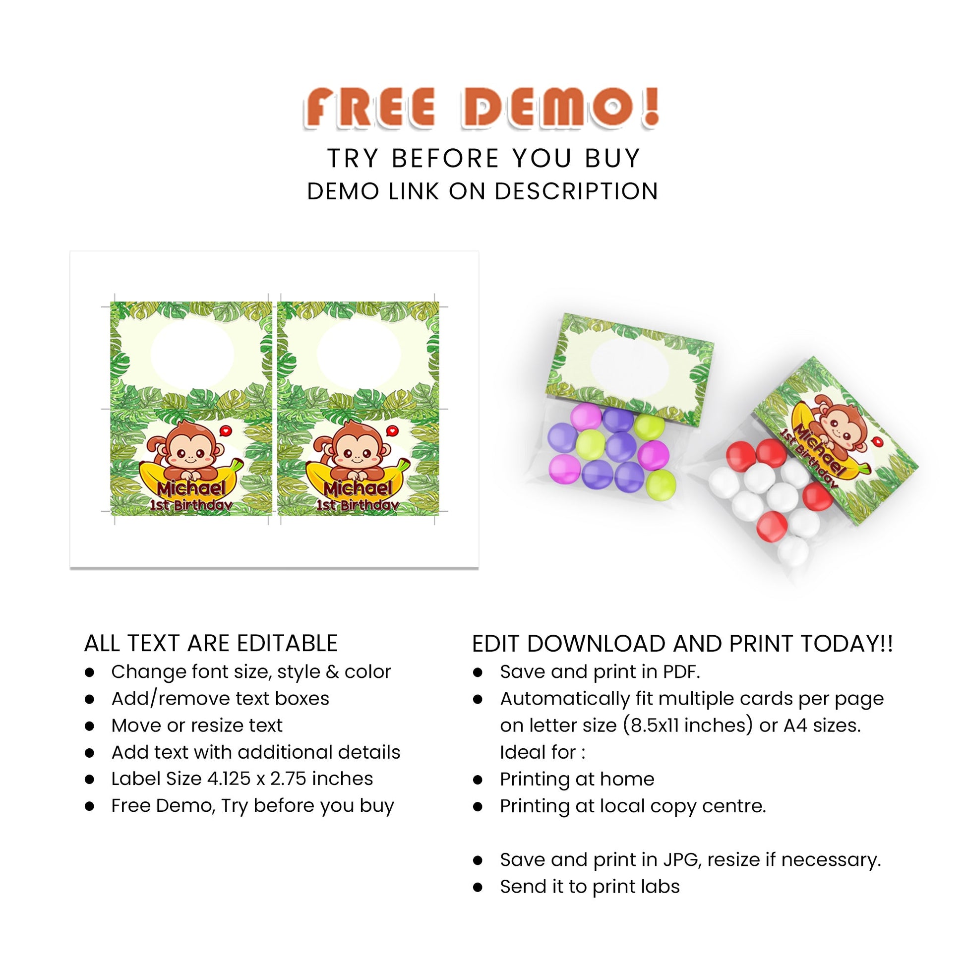 Little Monkey - Personalized Treat Bag Topper Labels for Sweet Surprises