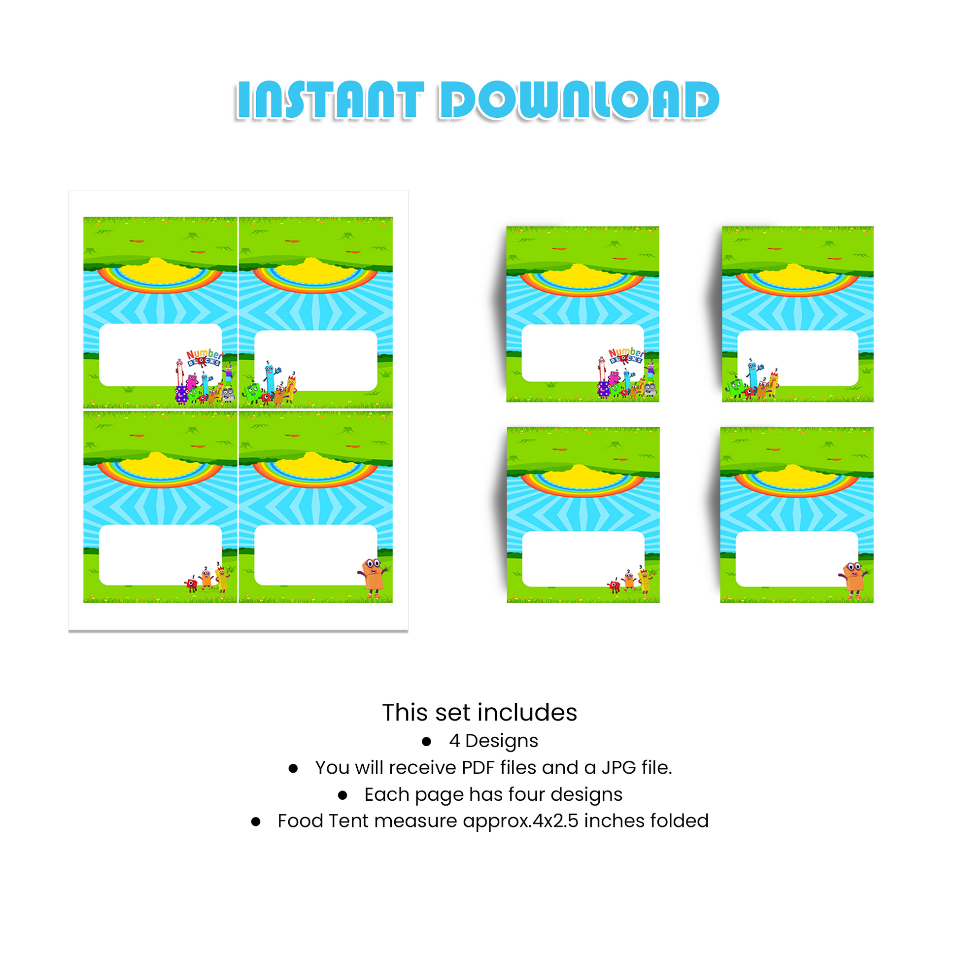 Food Tents/Food Cards with NumberBlocks Theme - Personalized for Your Party