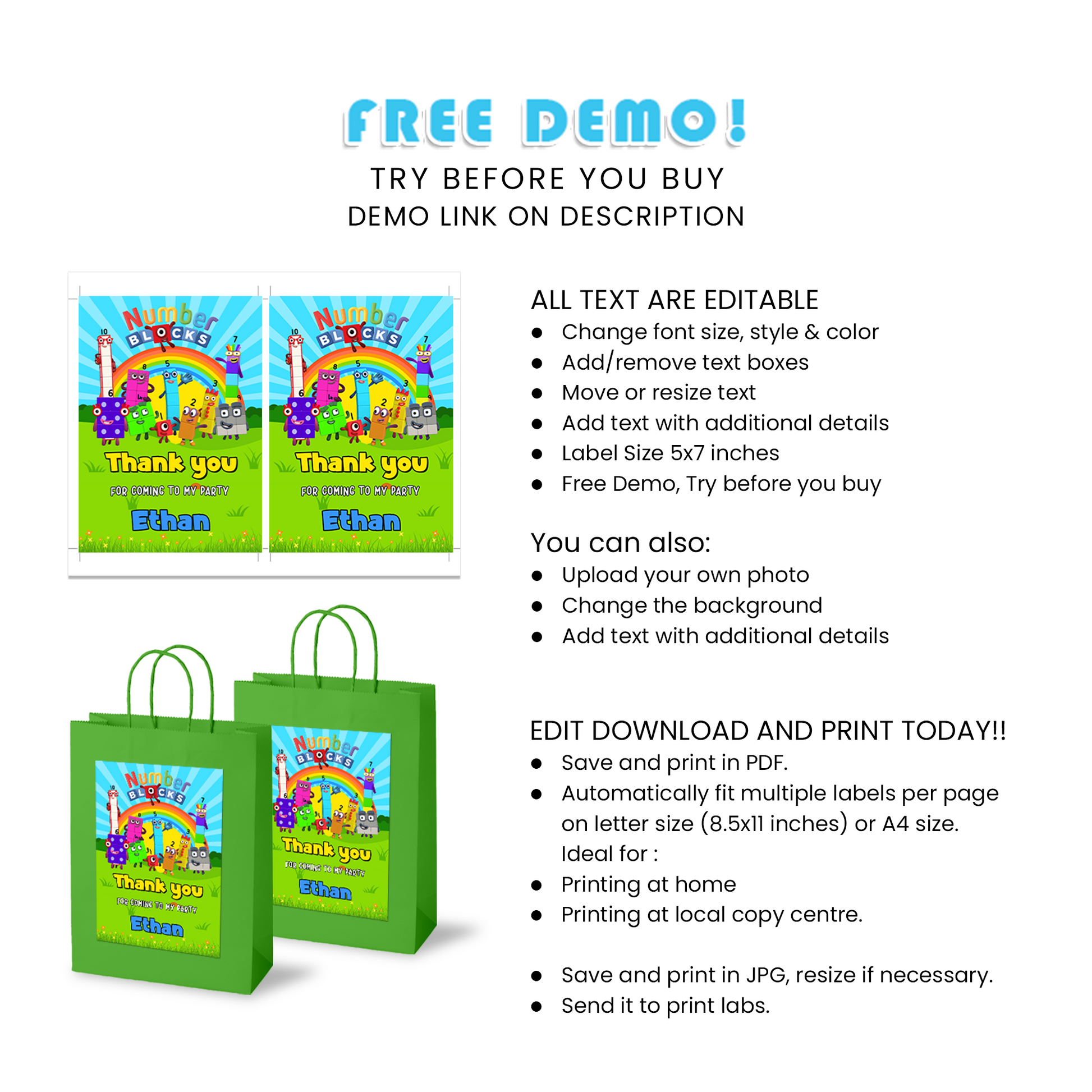 Gift Bag Labels - NumberBlocks Personalized for Your Child’s Event