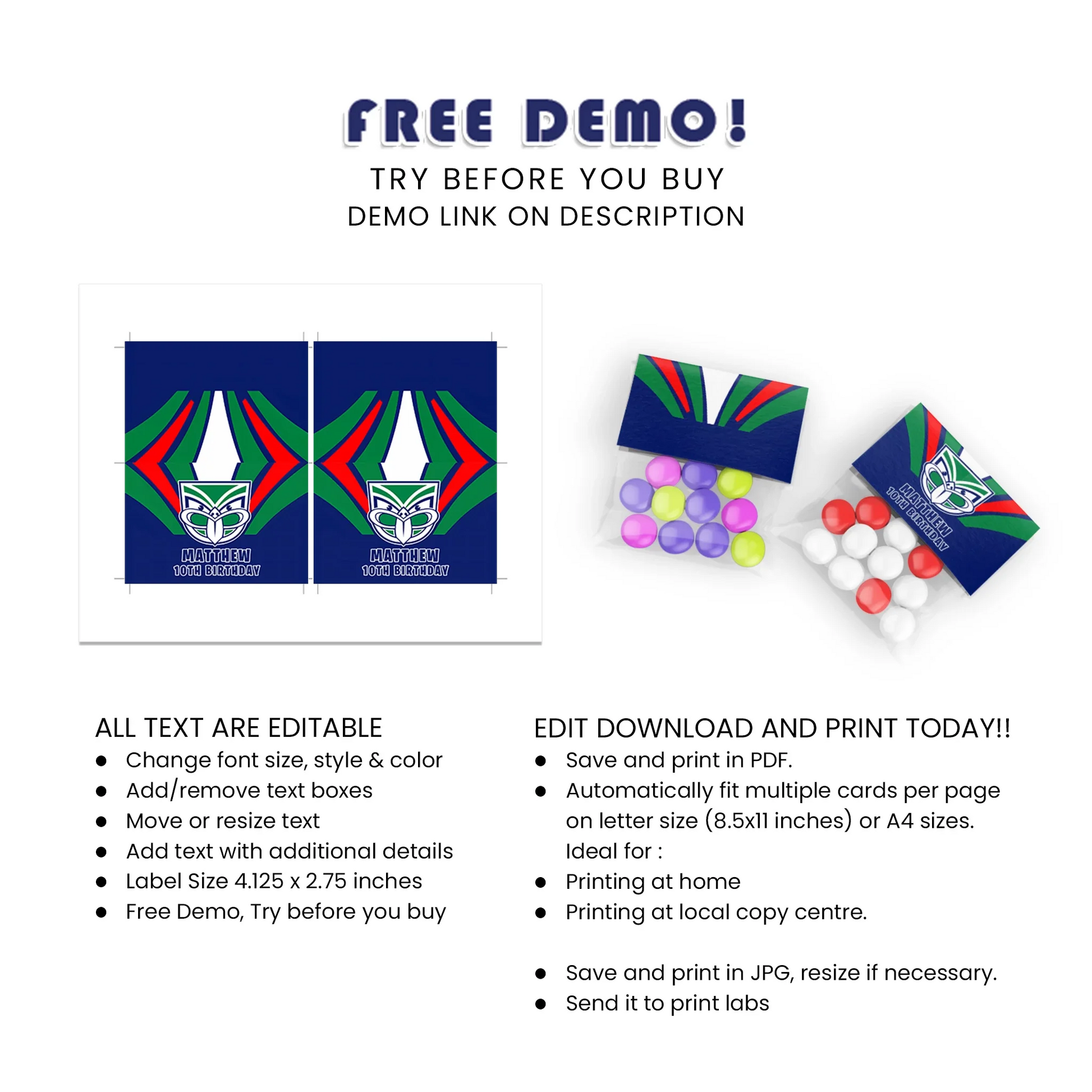Seal the Deal with NZ Warriors Treat Bag Topper Label