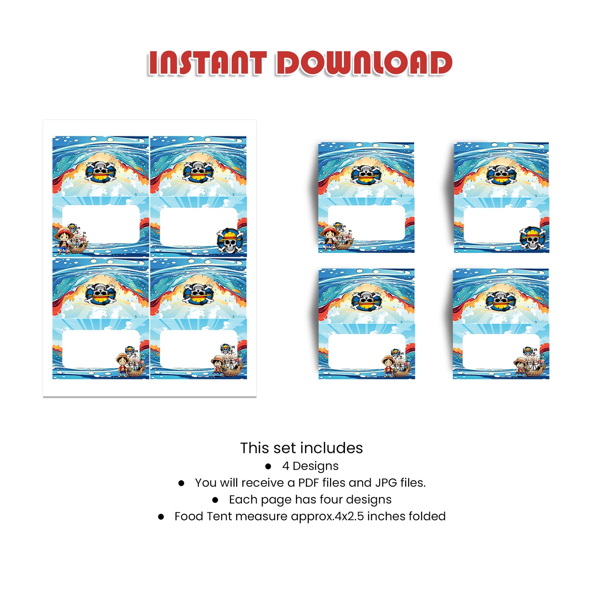 Our food cards, featuring your favorite One Piece characters, are a fun and unique way to label your party food. These personalized cards are sure to be a hit at any One Piece-themed event.