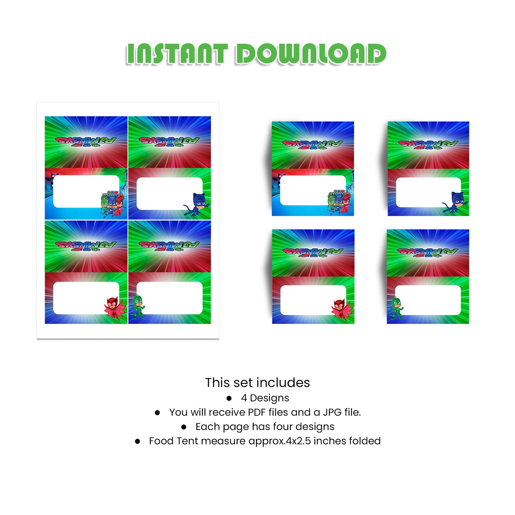 Enhance Your Party Decor with PJ Masks Food Cards - Perfect for Themed Parties