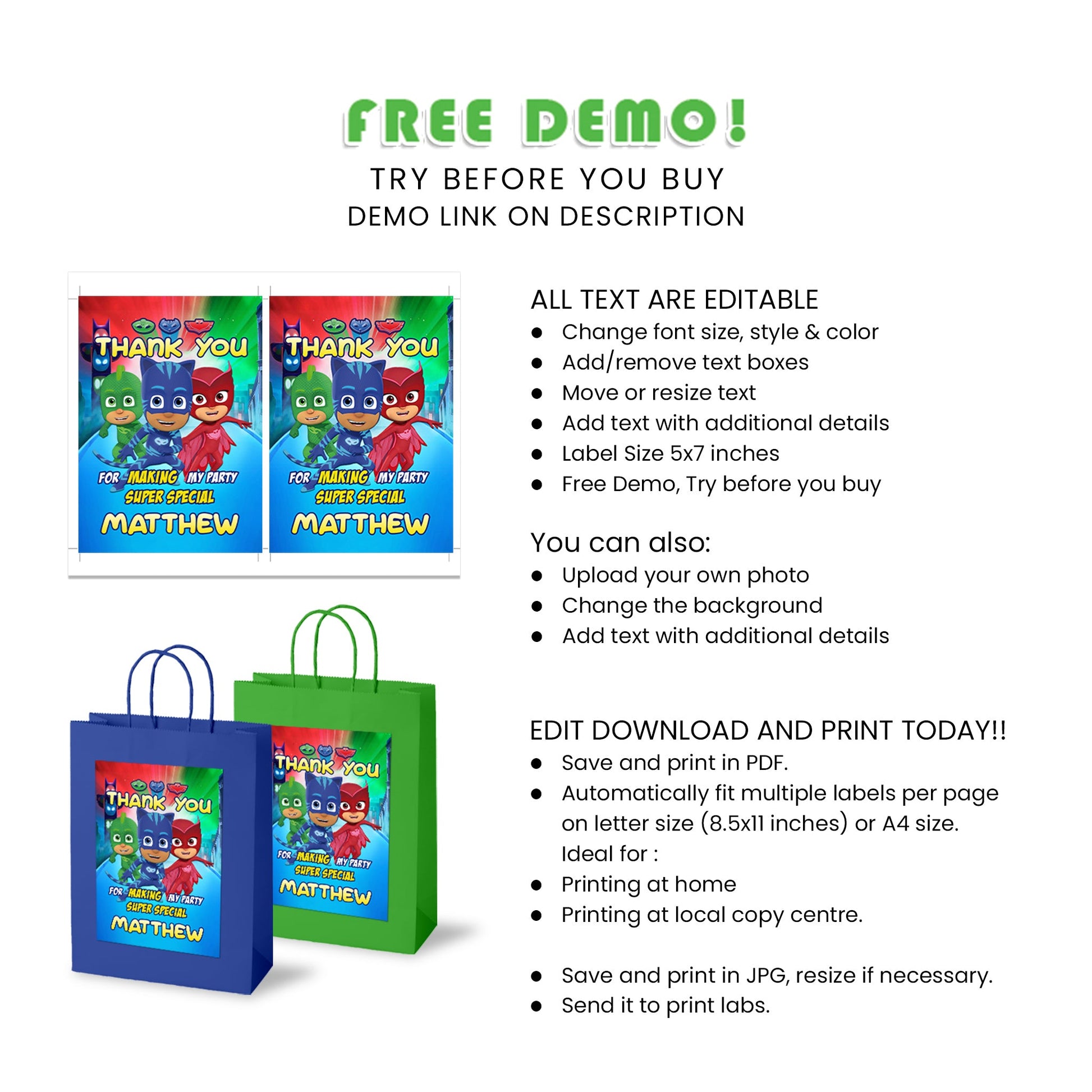 Give your gifts a personal touch with our PJ Masks Goddy Bag Label. This label adds a personalized touch to your event, making it even more memorable. Choose our PJ Masks goddy bag label for a unique and thoughtful gift.