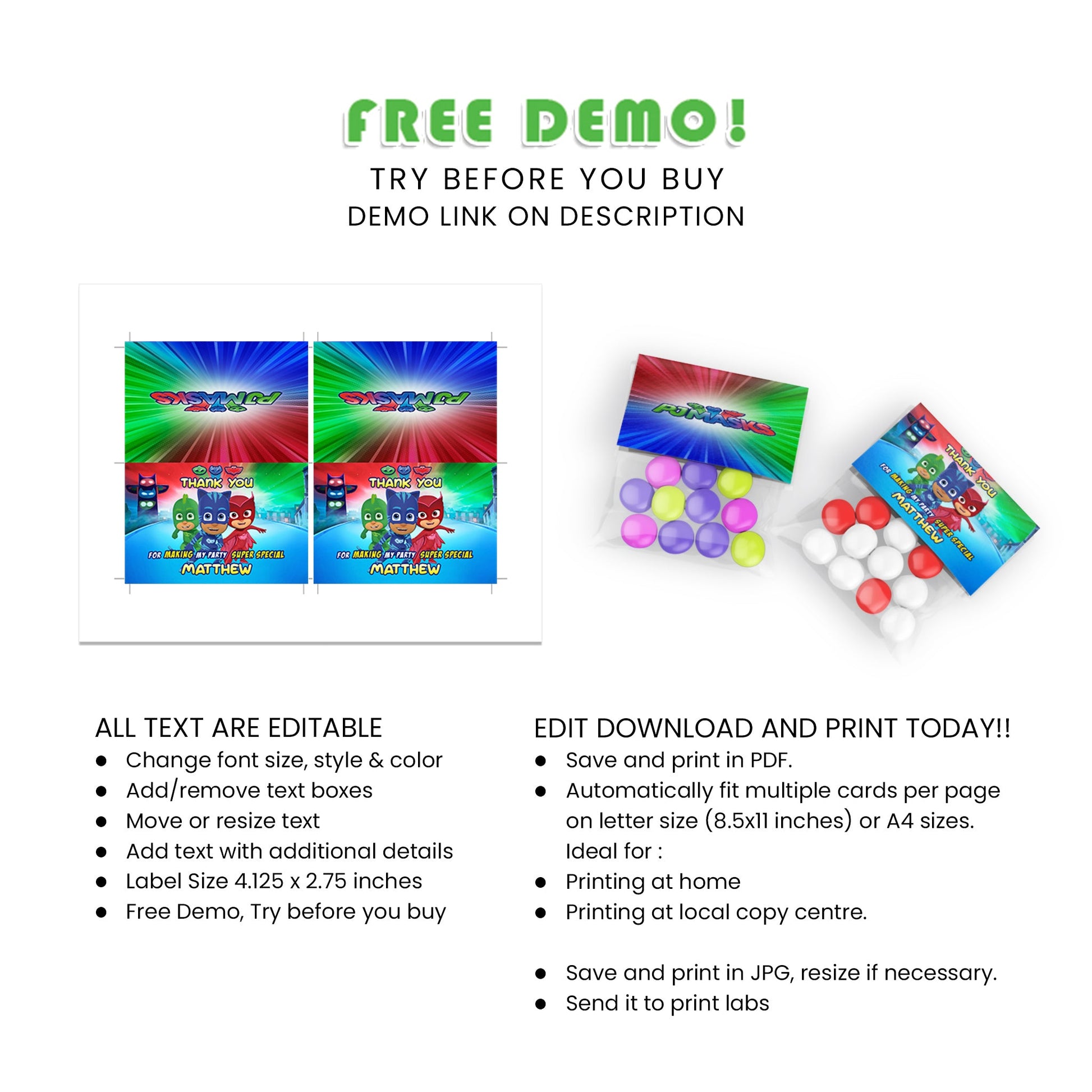 Seal Your Treat Bags in Style with PJ Masks Treat Bag Topper Label