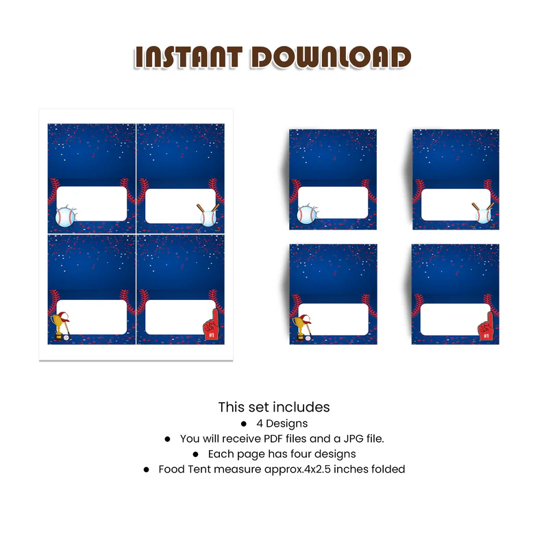 Label your party foods with our Rookie of the Year Food Cards. These editable templates feature baseball-themed designs, allowing you to customize dish names and add a decorative touch to your buffet or dessert table.?