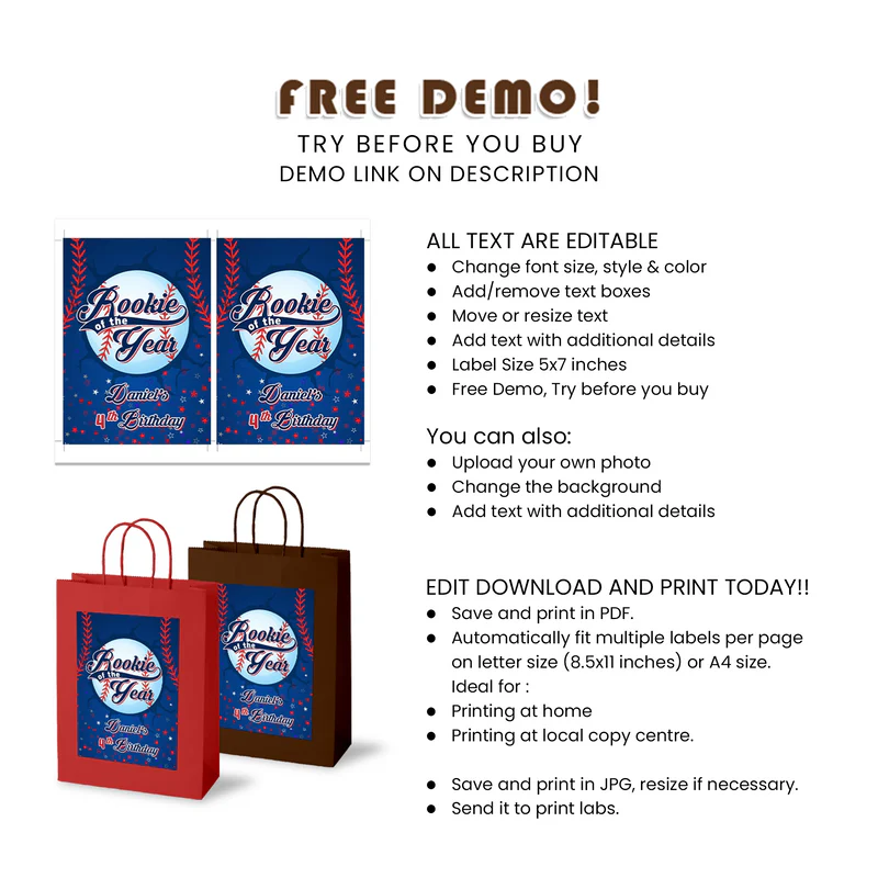 Rookie of the Year Goodie Bag Label | Printable Party Favor Tag | Editable Design
