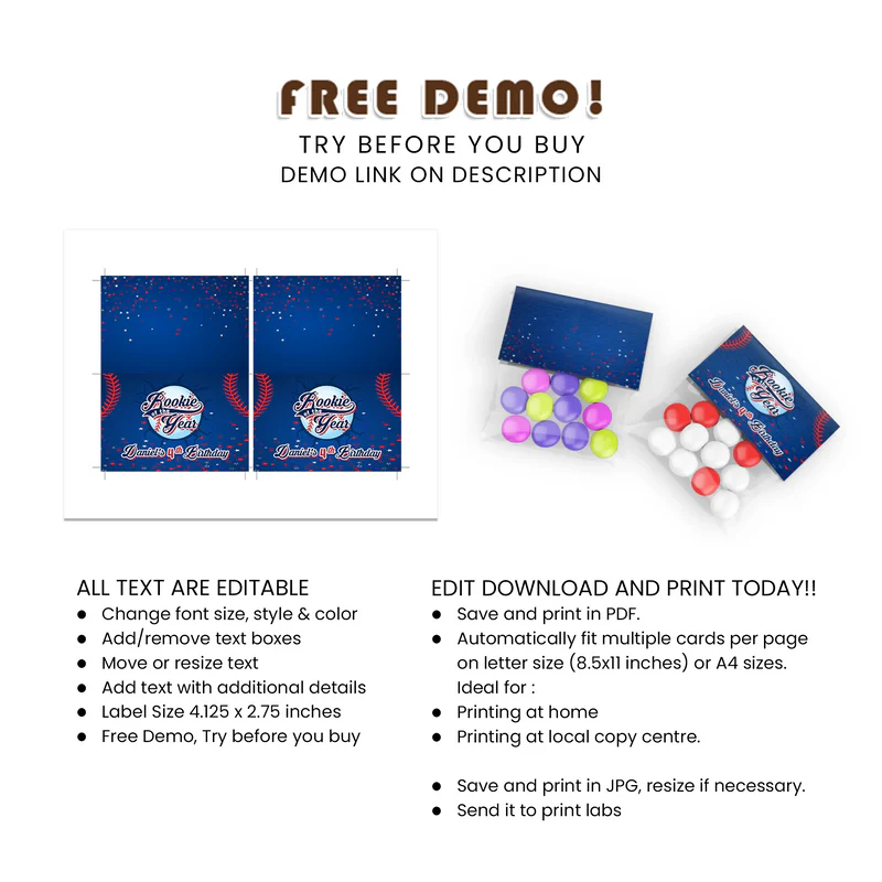 Top off your treat bags with our Rookie of the Year Treat Bag Topper Labels. These printable toppers feature baseball-themed designs and customizable text, adding a festive and personal touch to your party favors.?