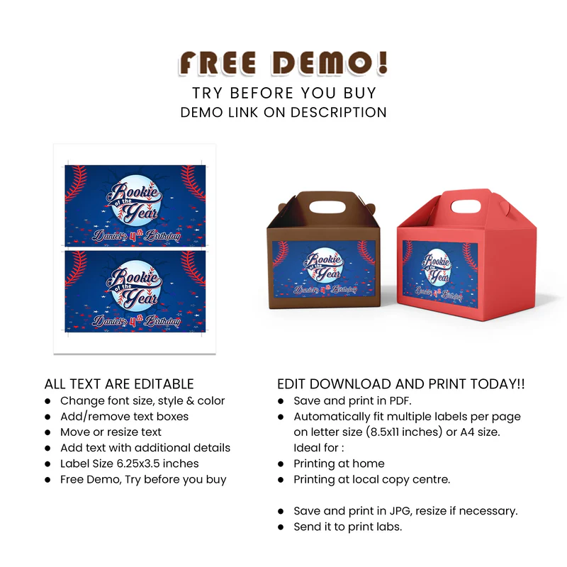 Rookie of the Year Treat Box Label | Printable Gable Box Tag | Editable File