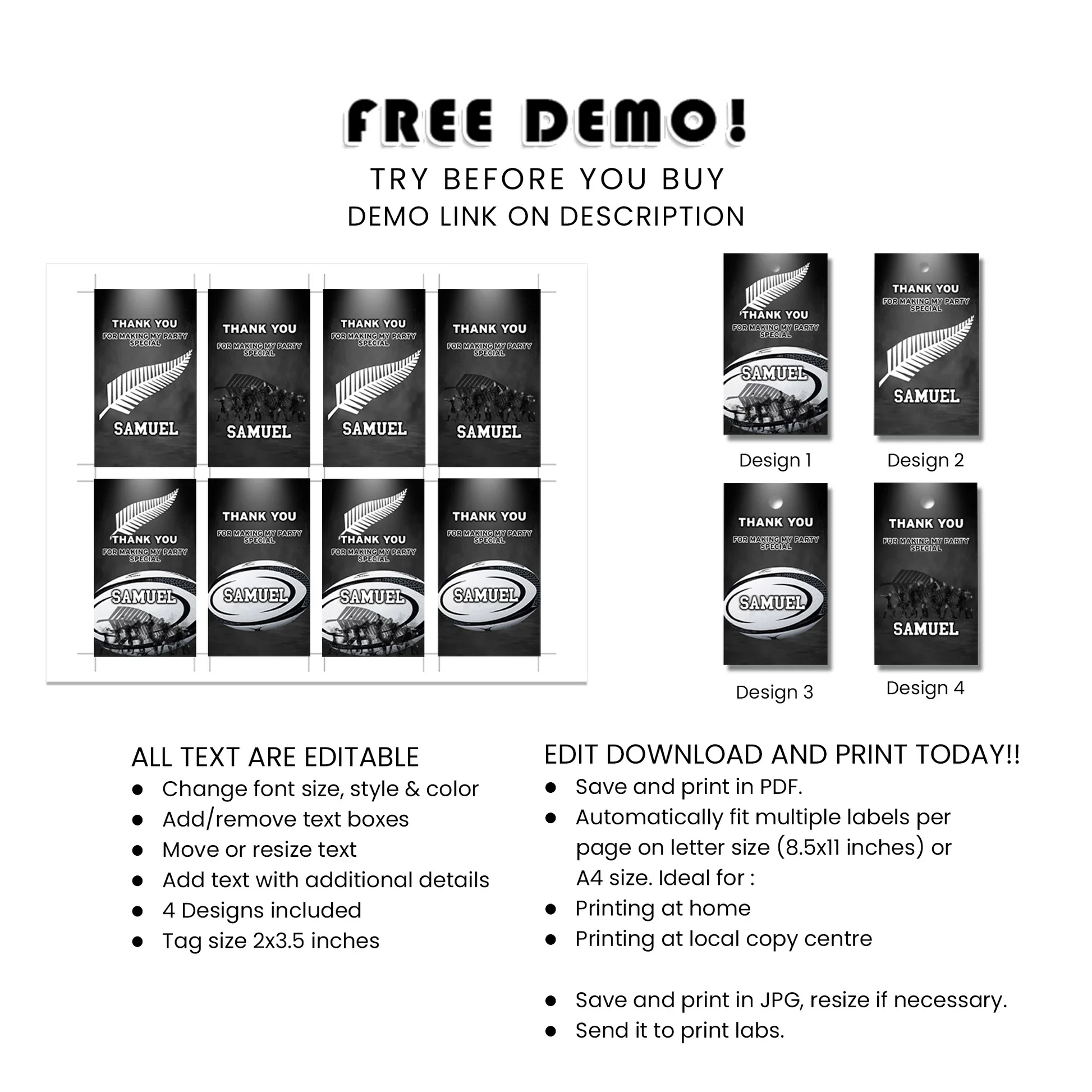 This Birthday Thank you Favor Tag is fully editable and available for immediate download. Our user-friendly online editor allows for easy customization without any software or font downloads.