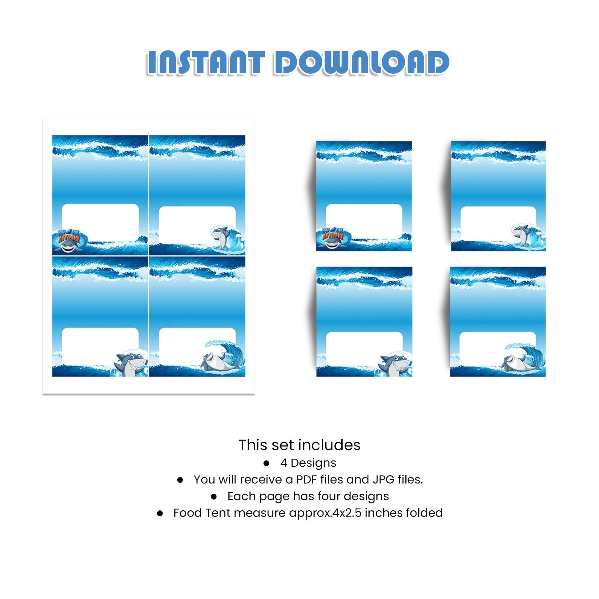 Label your feast with Shark Food Cards, a great way to guide your guests through the ocean of flavors at your party.