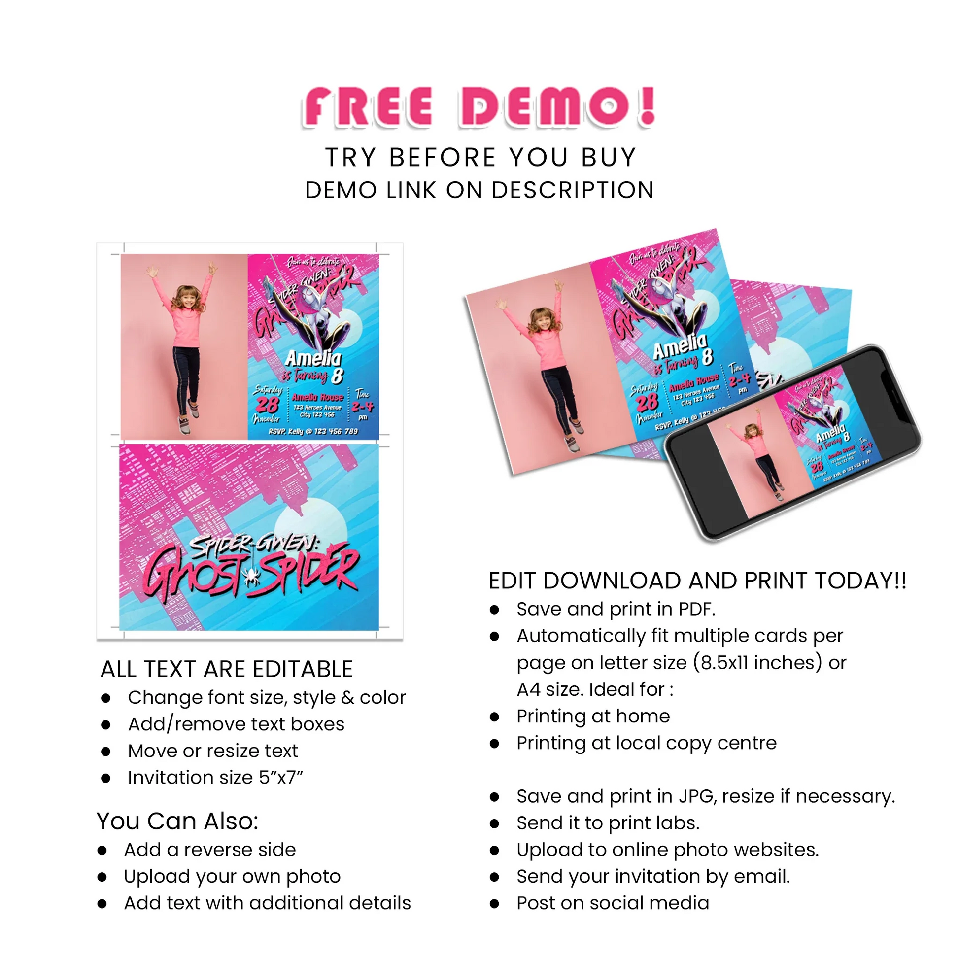 This Birthday Invitation is fully editable and available for immediate download. Our user-friendly online editor allows for easy customization without any software or font downloads.