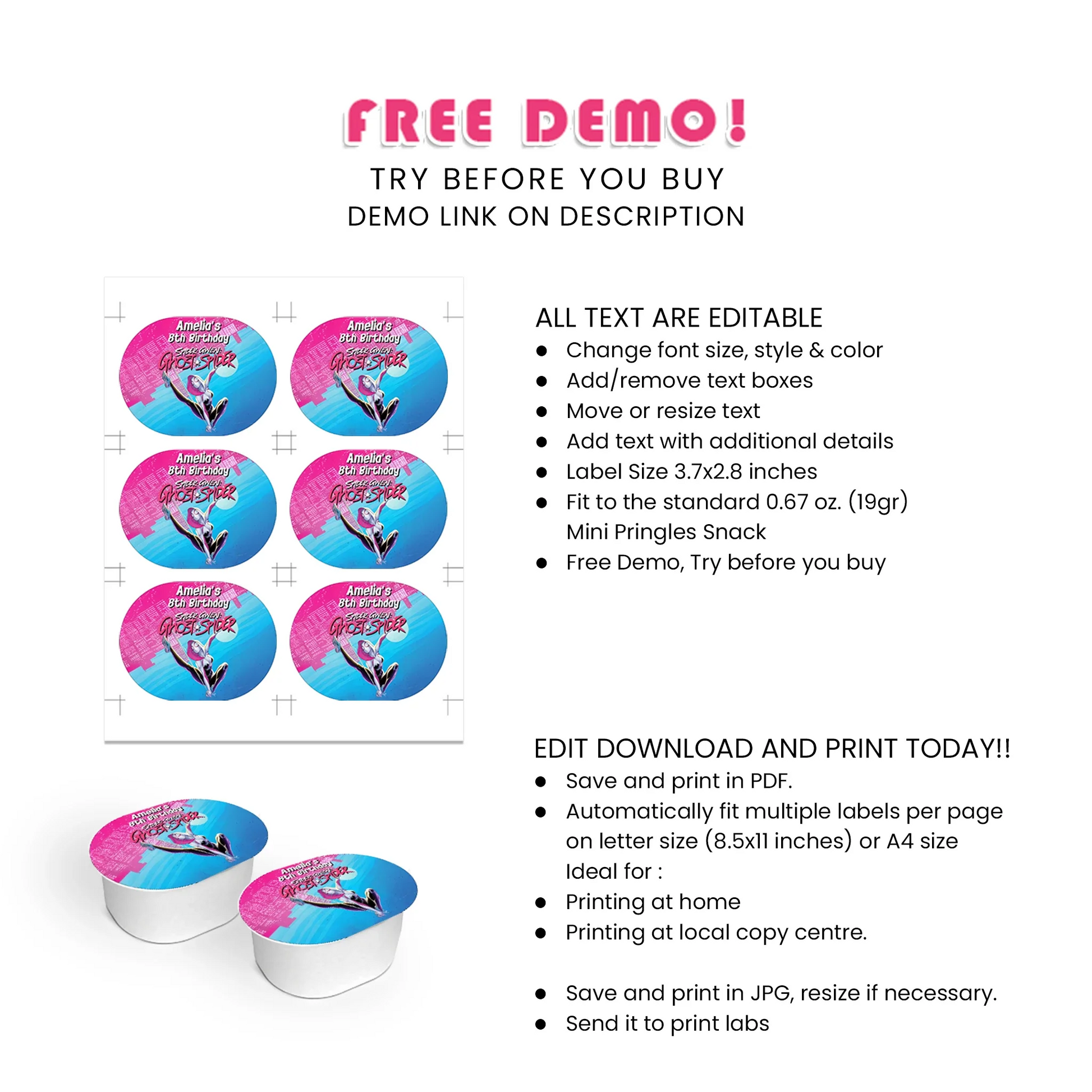 Each label measures 3.7"x2.8". Made to order to fit the standard 0.67 oz. Mini Pringles Snack (If you have a specific label and need resizing, please message us).