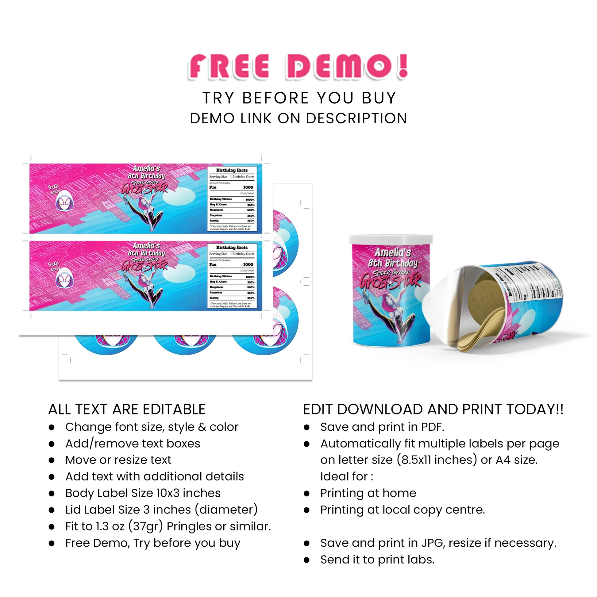 Add excitement to party snacks with Spider-Woman themed labels designed for small cans. Easy to personalize and great for favors. Discover your design.
